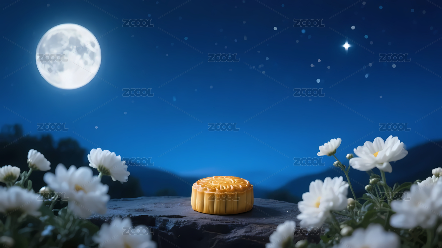主视觉,中秋,场景,背景,夜景,花卉,节日,传统,氛围,温馨