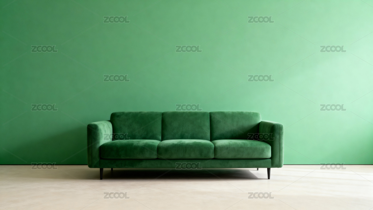 绿色沙发与纯色背景墙