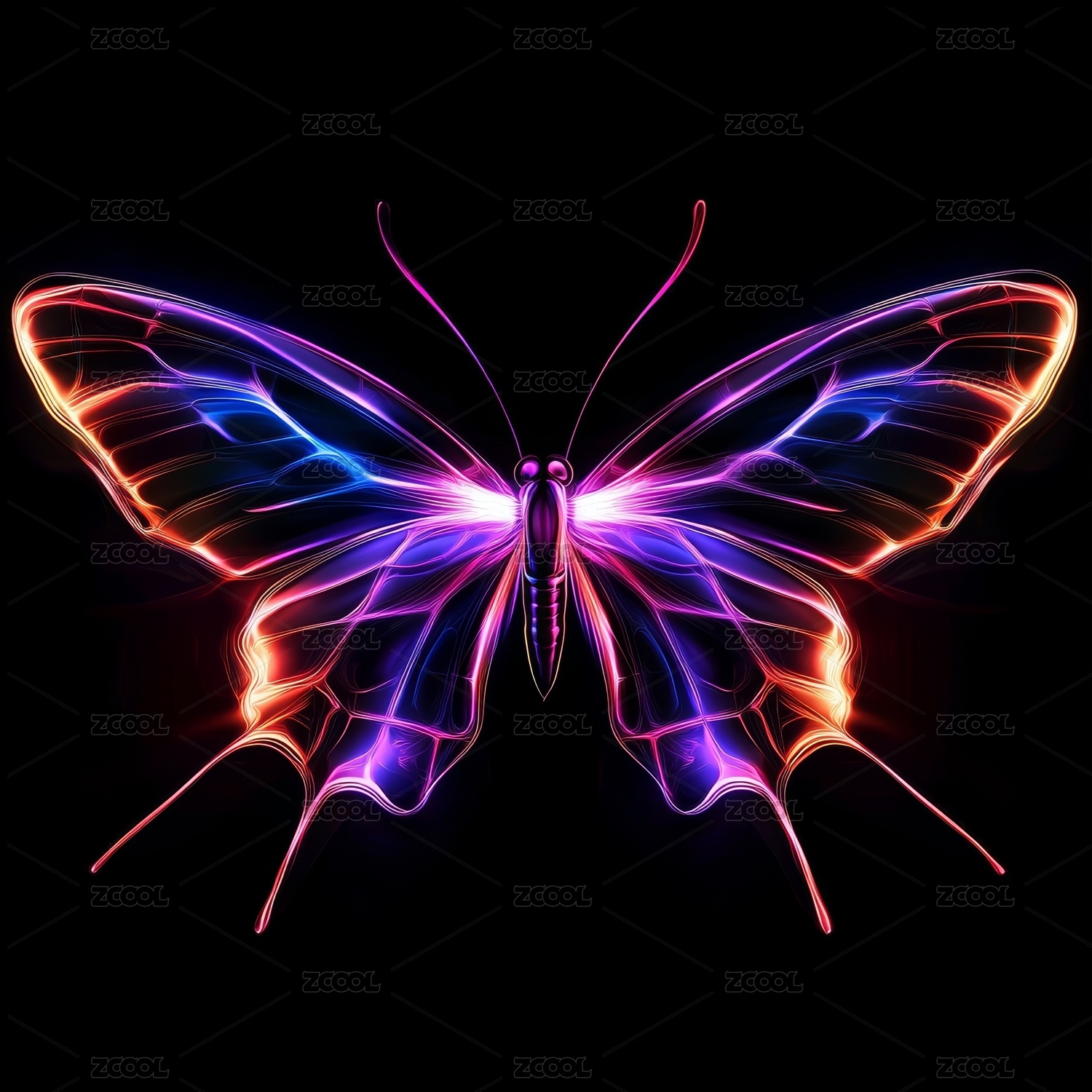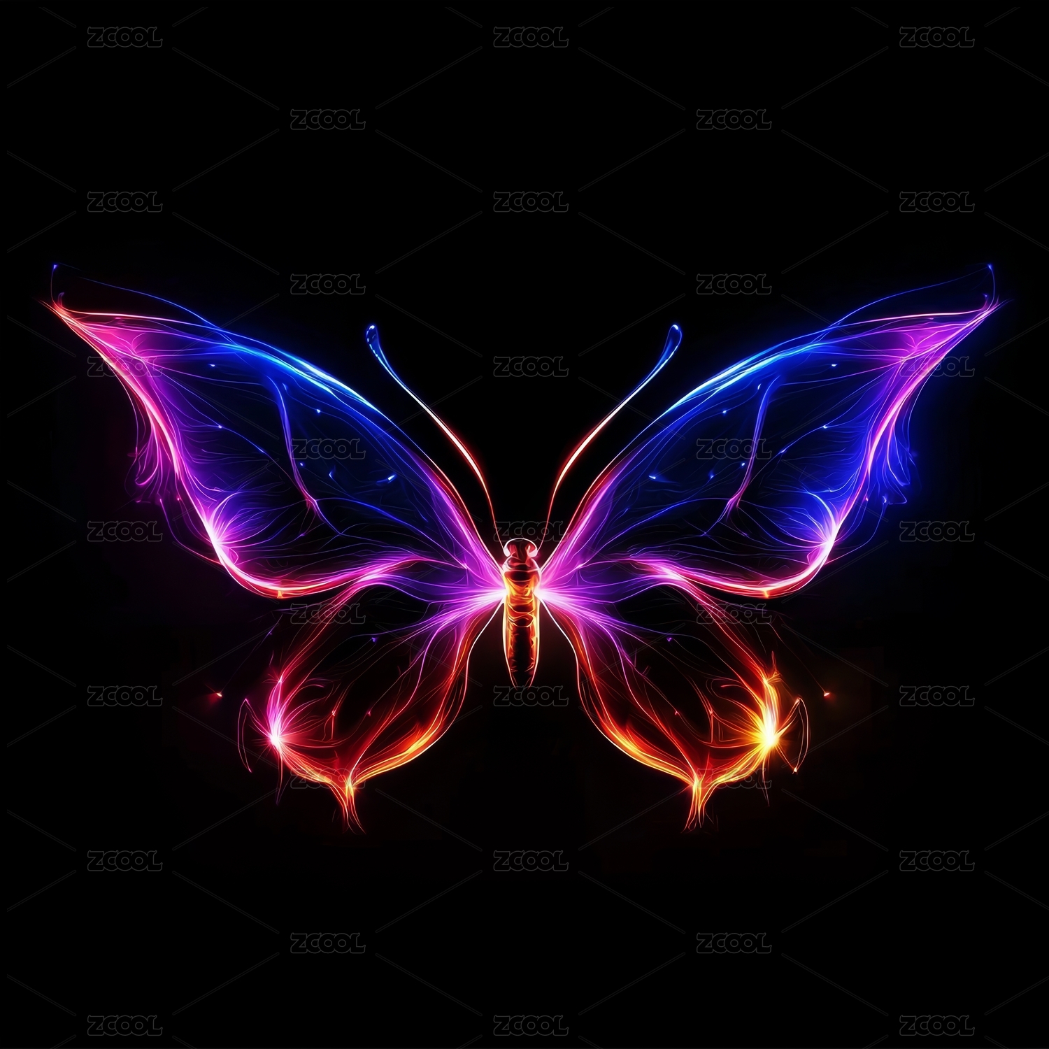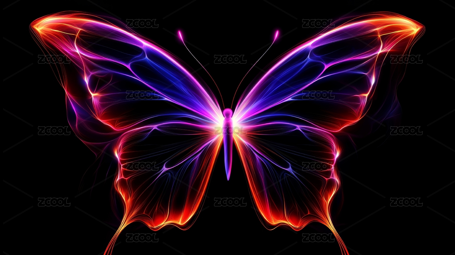 黑色背景的现代光效科技感3D彩色蝴蝶