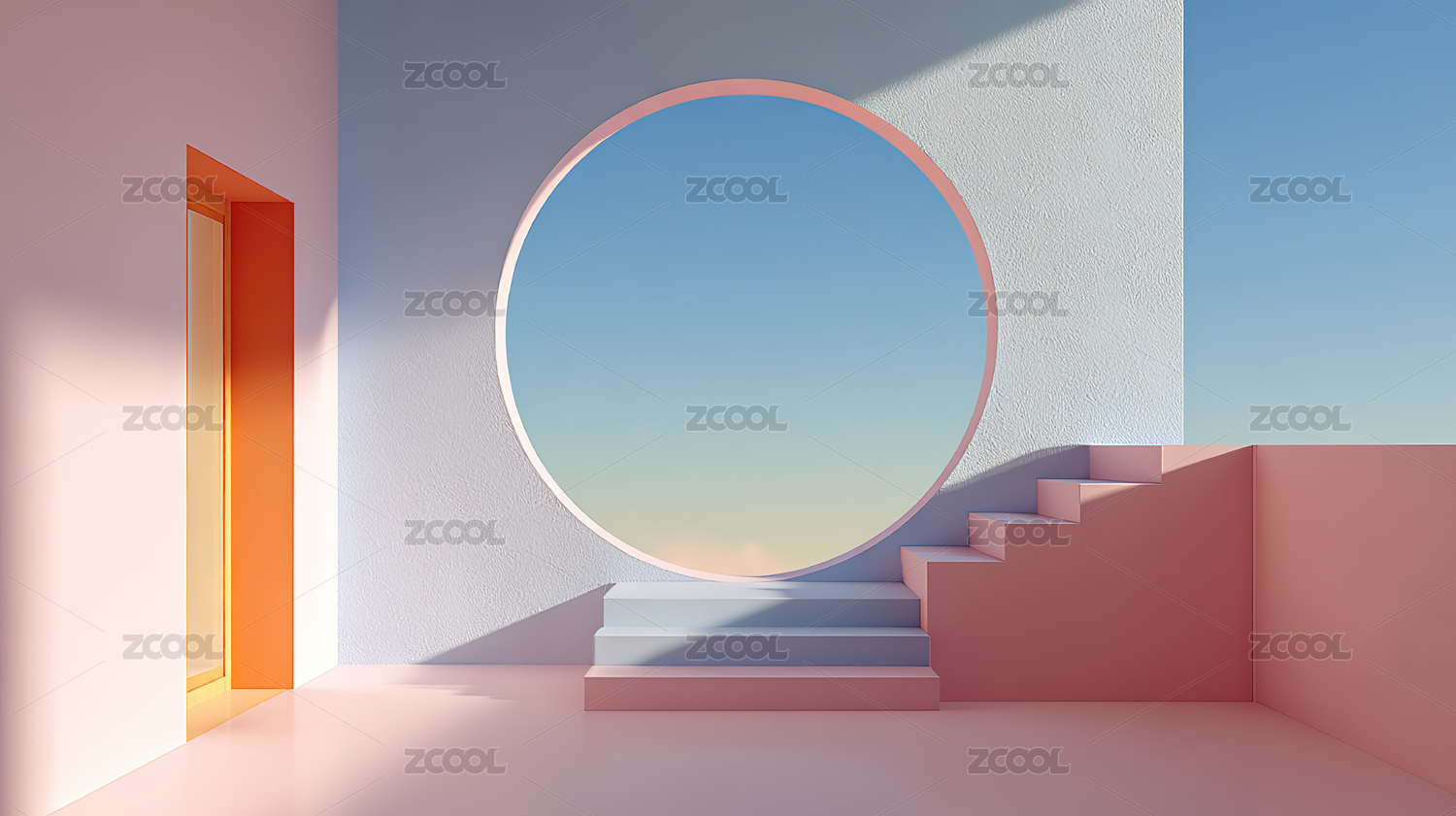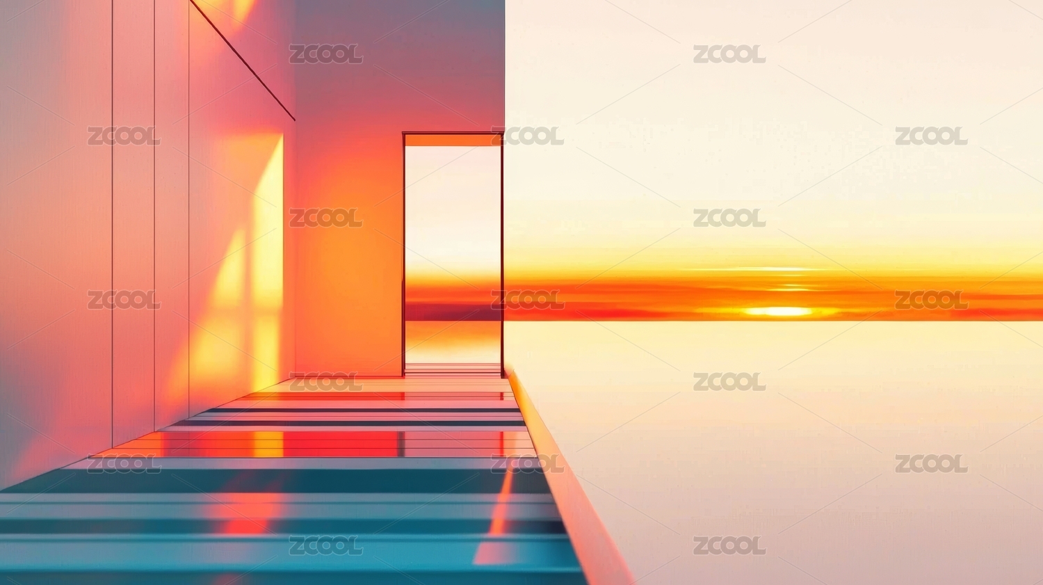 主视觉,发光,门,橙调,空间,延伸,场景,光影,黄昏,阶梯