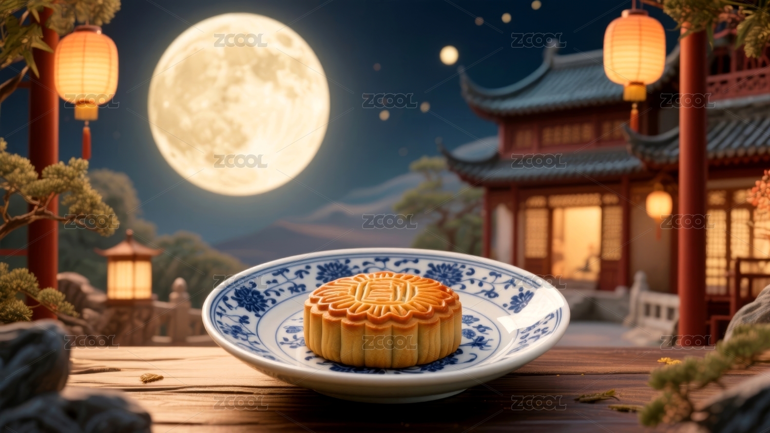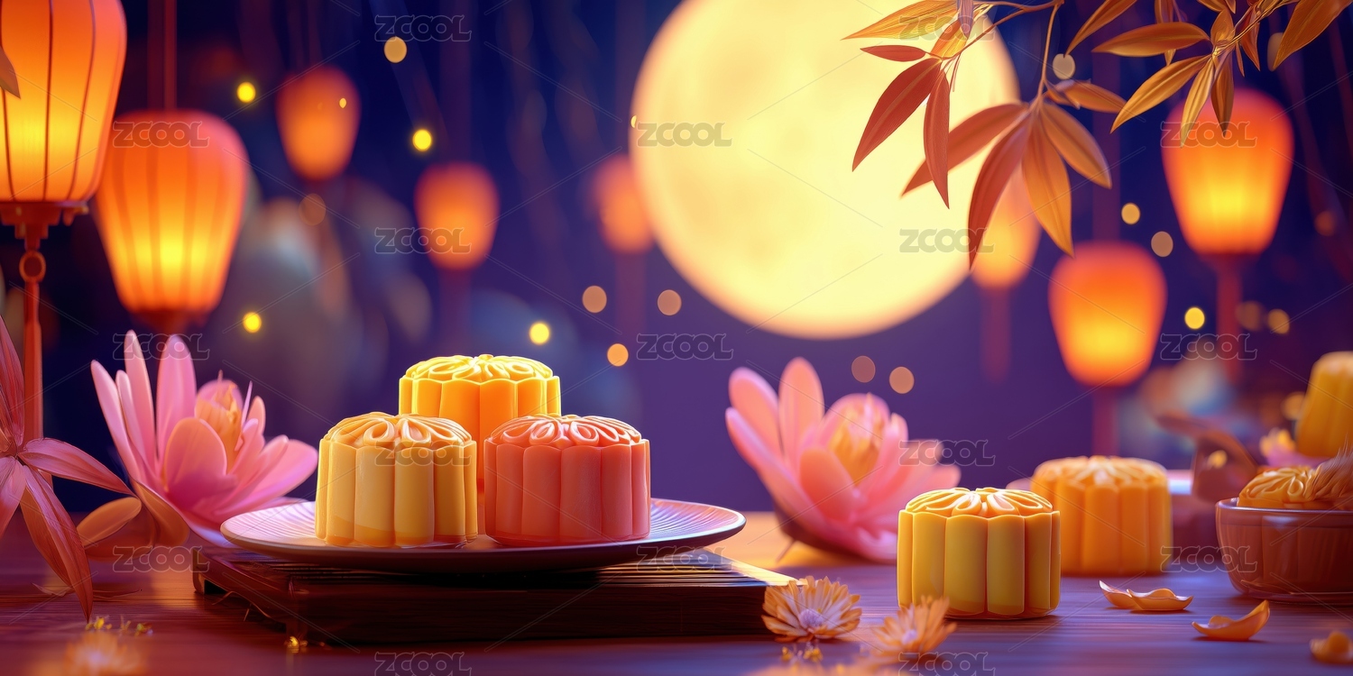 月饼中式中秋夜景场景