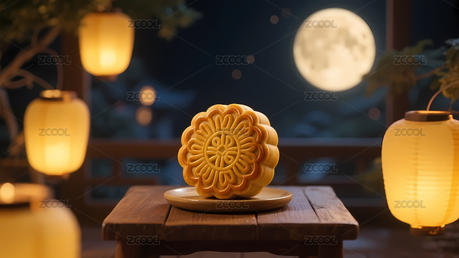 满月下朦胧月饼