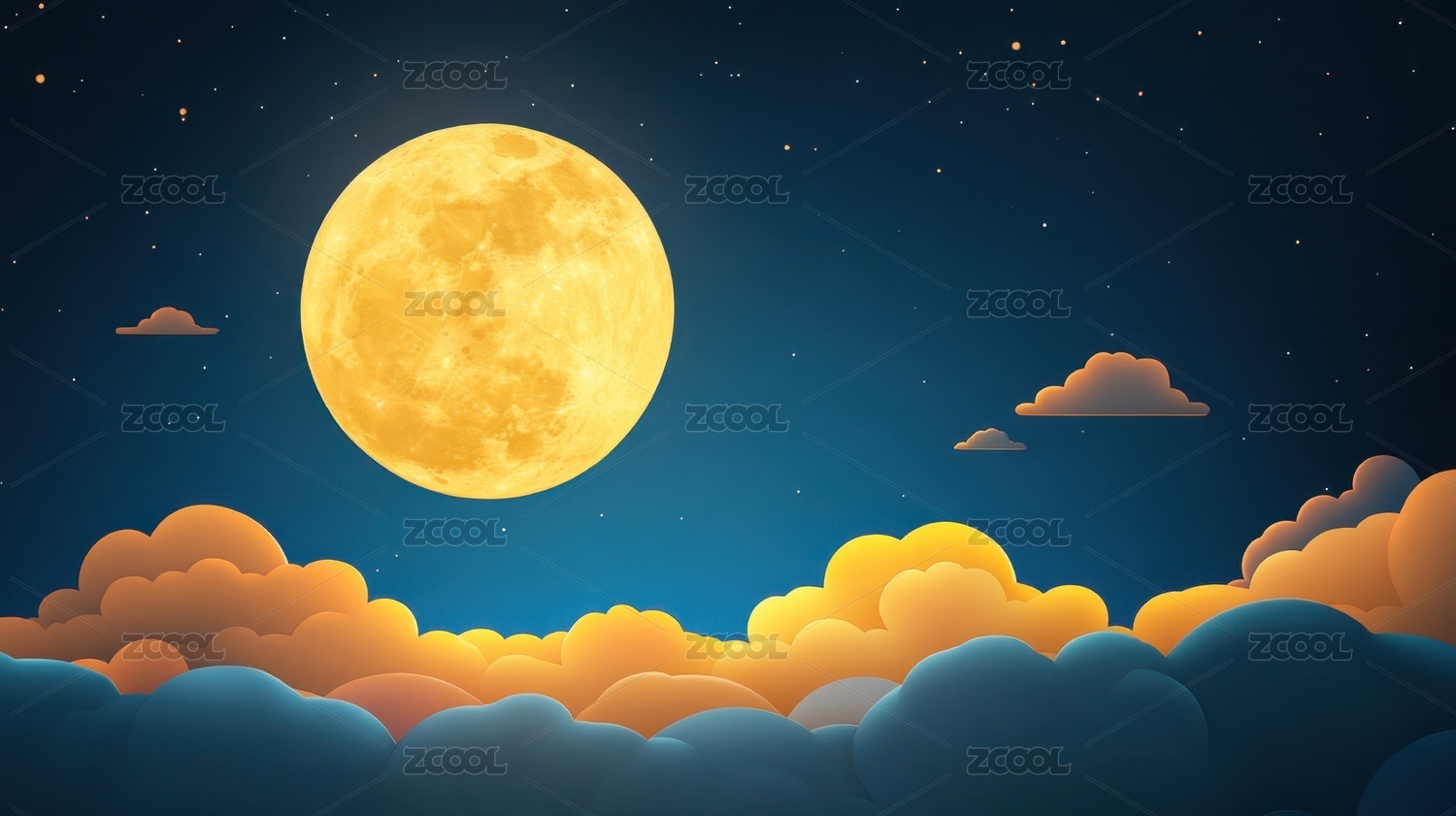 夜空满月与孔明灯中秋佳节月圆人团圆