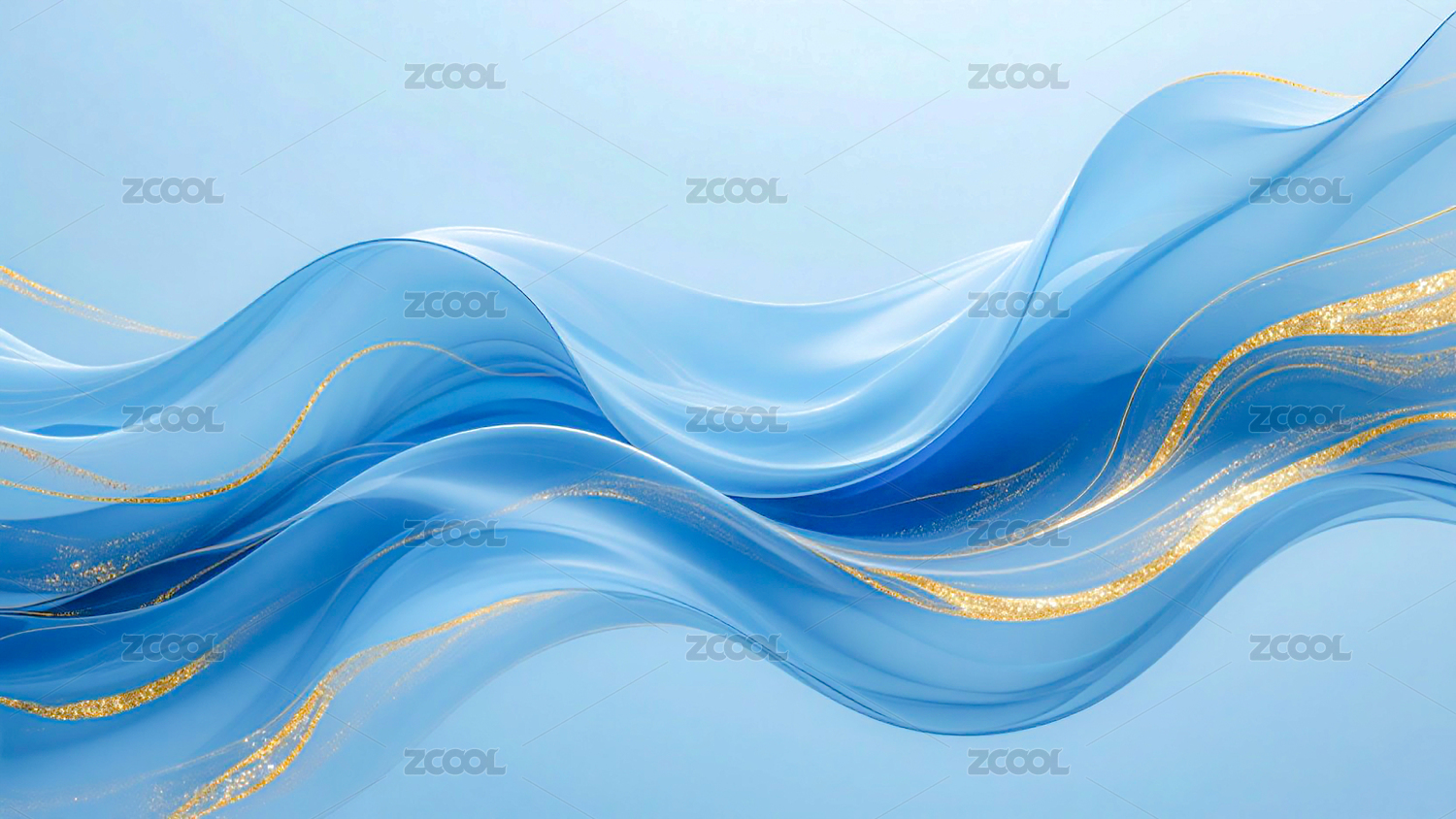 蓝色,飘逸,背景,装饰画,金色点缀,抽象,艺术,丝绸,曲线,动态