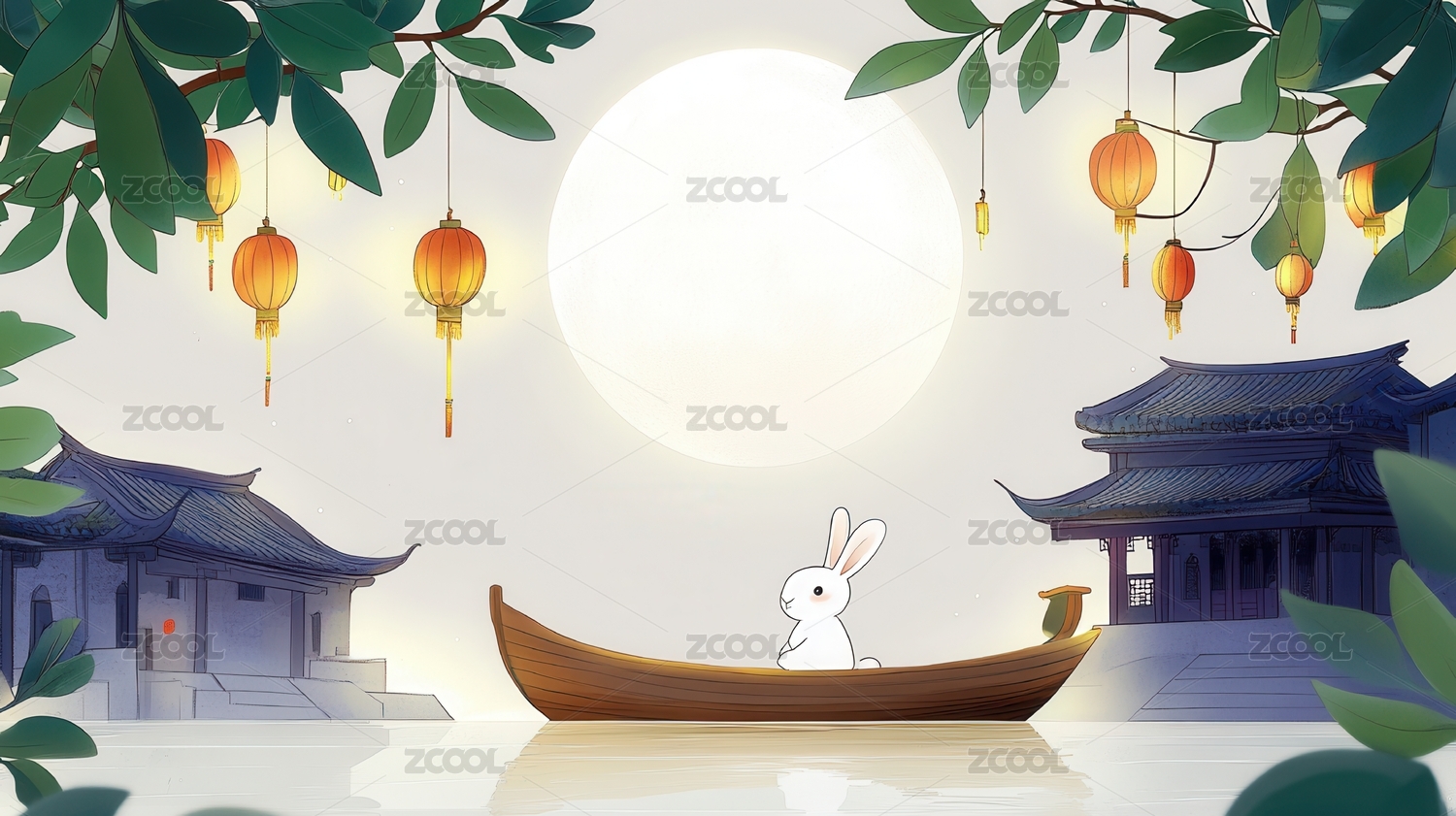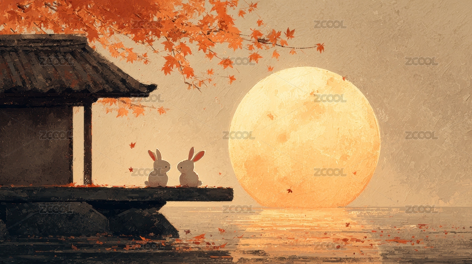 主视觉,月饼,国风,中秋,山水,场景,圆月,糕点,传统,节日