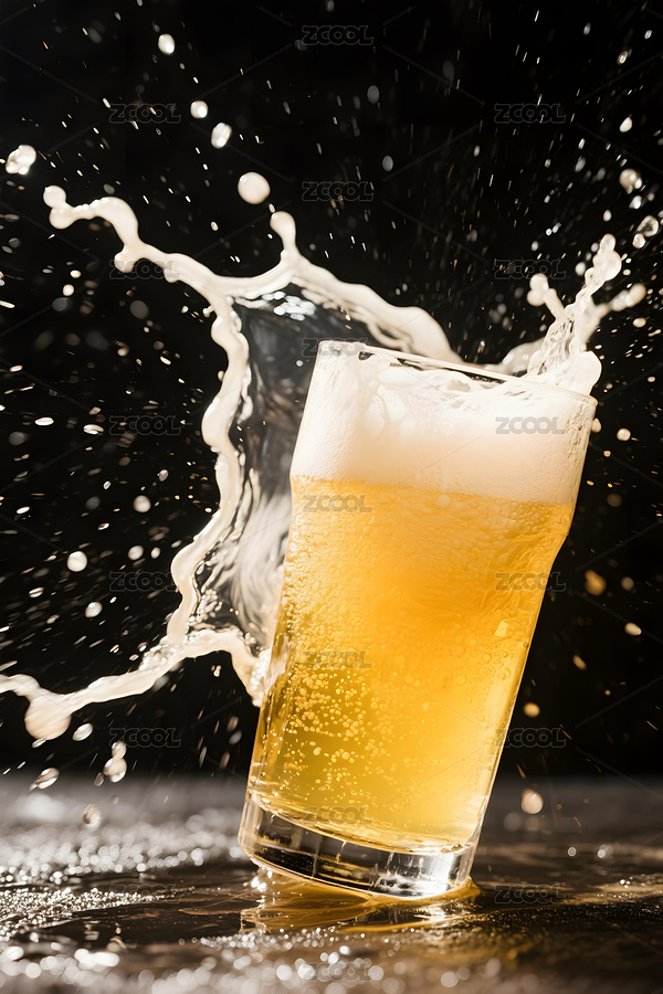 金色啤酒水花溅