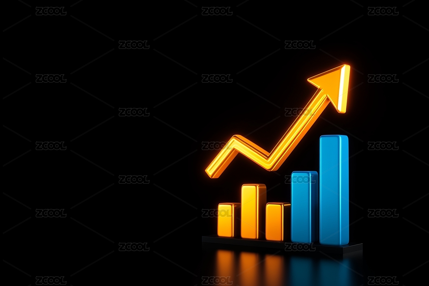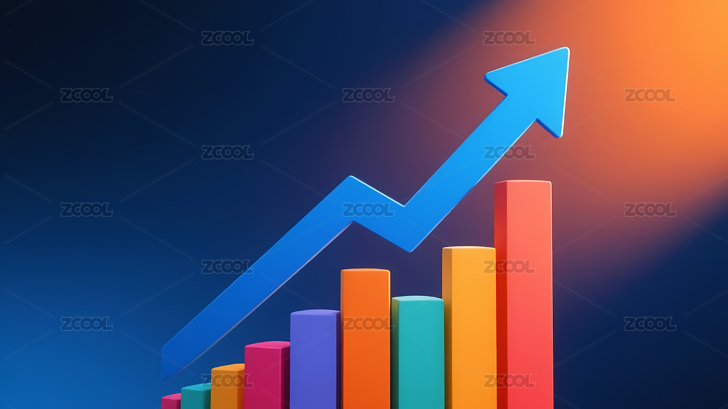 蓝色,橙色,黄色,紫色,彩色,渐变,柱状图,箭头,上升,趋势