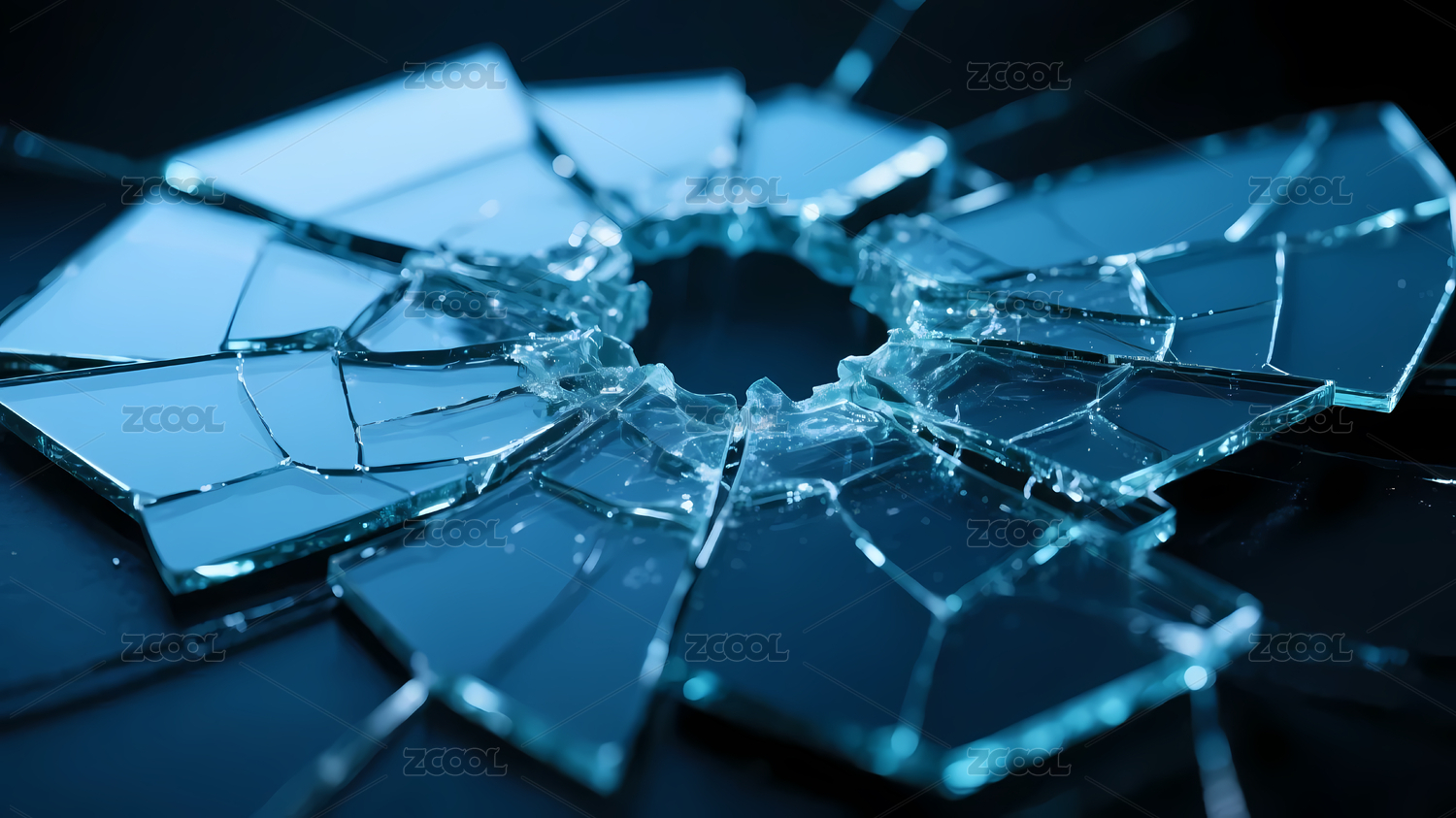 蓝色裂纹玻璃冷色调