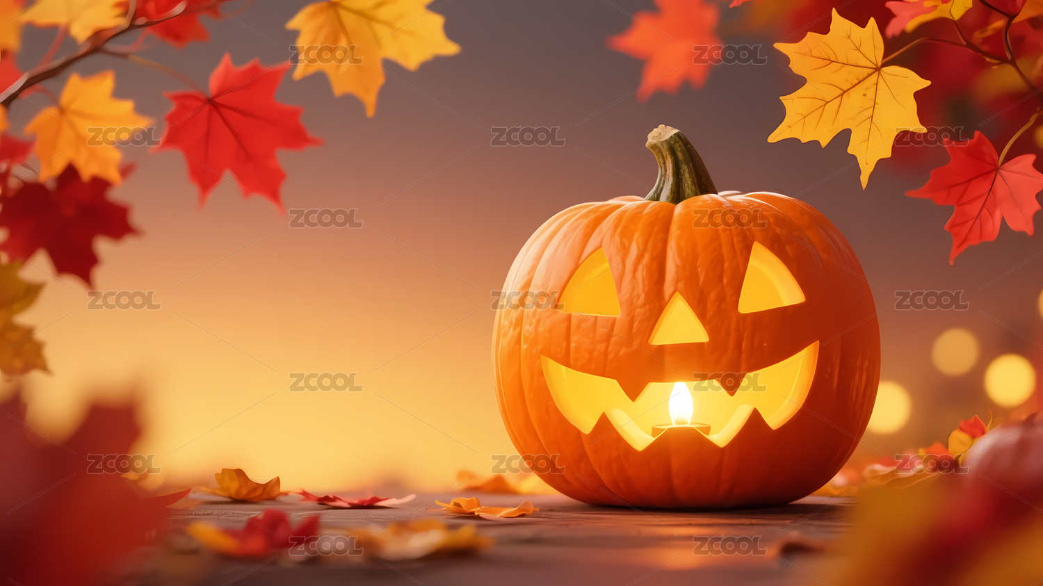 黄色,红色,橙色,南瓜,笑脸,秋叶,节日,装饰,秋天,季节