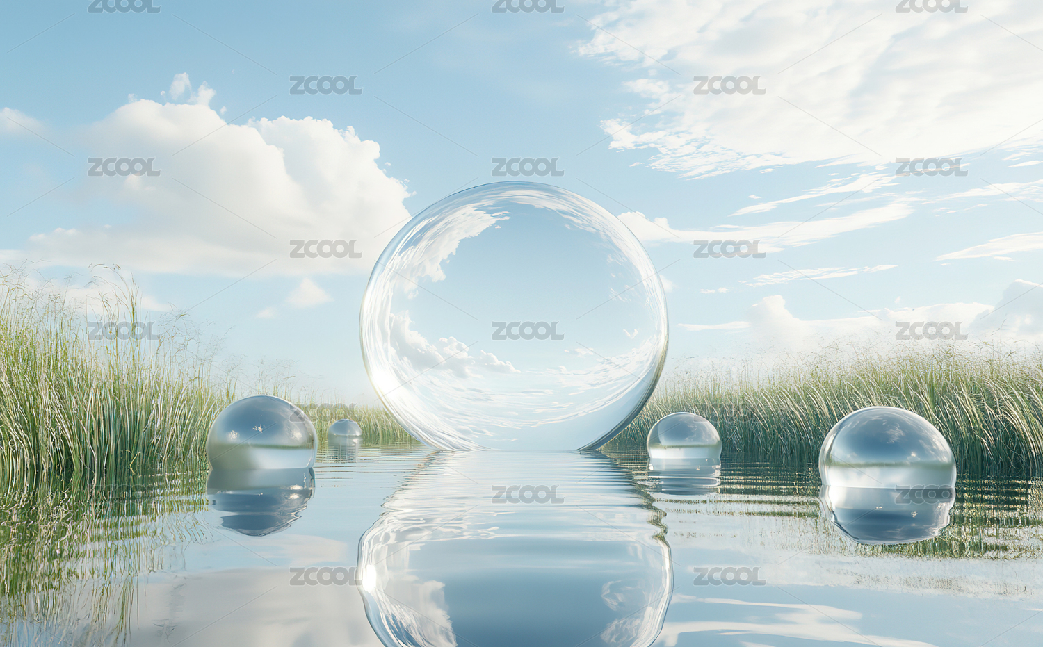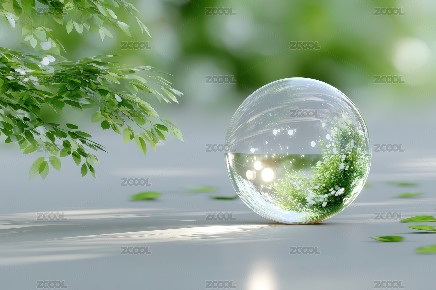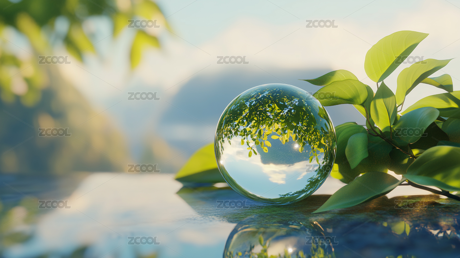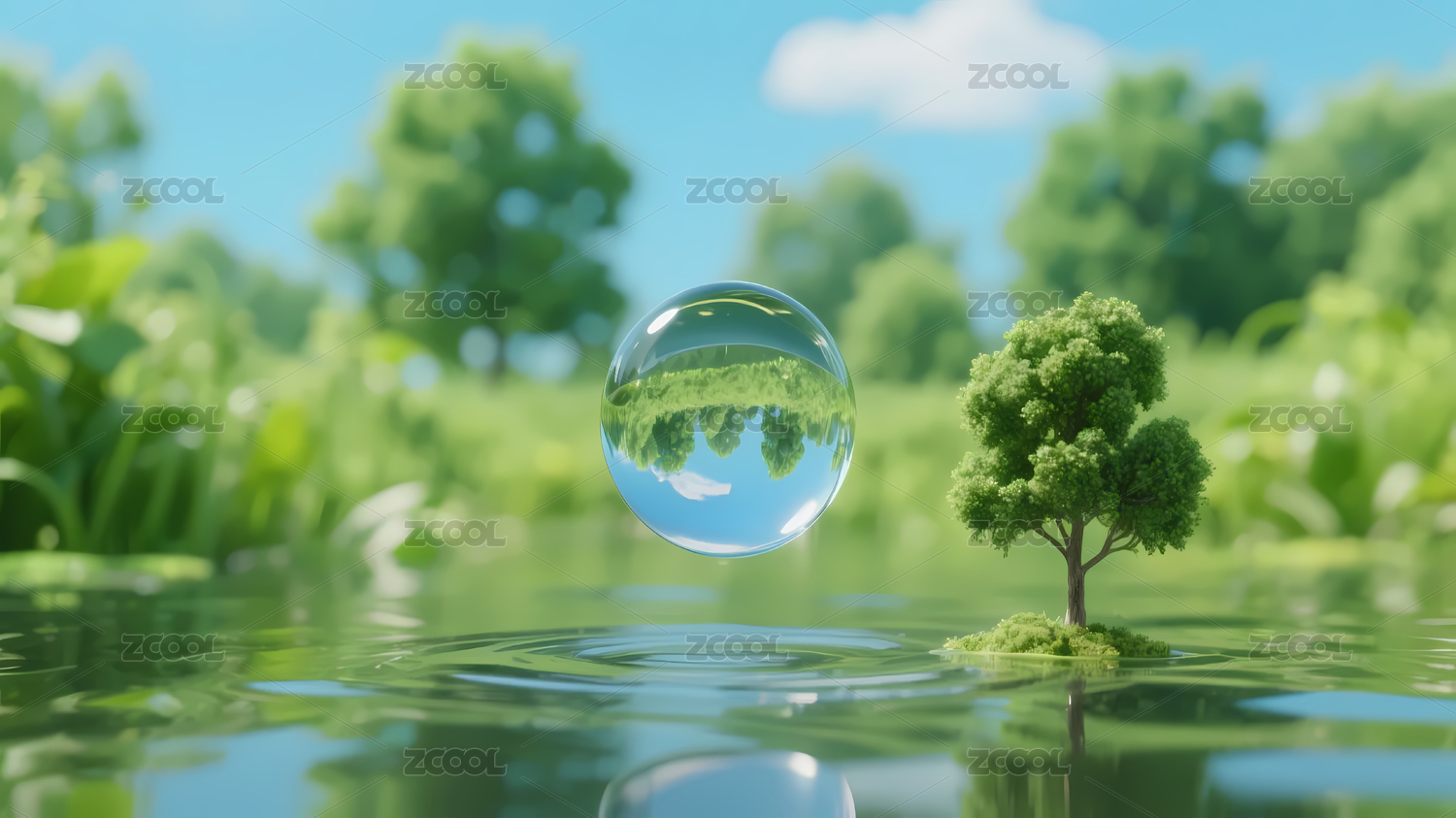 树木,蓝天,绿色,透明,草地,白云,植被,水晶球,映射,光点