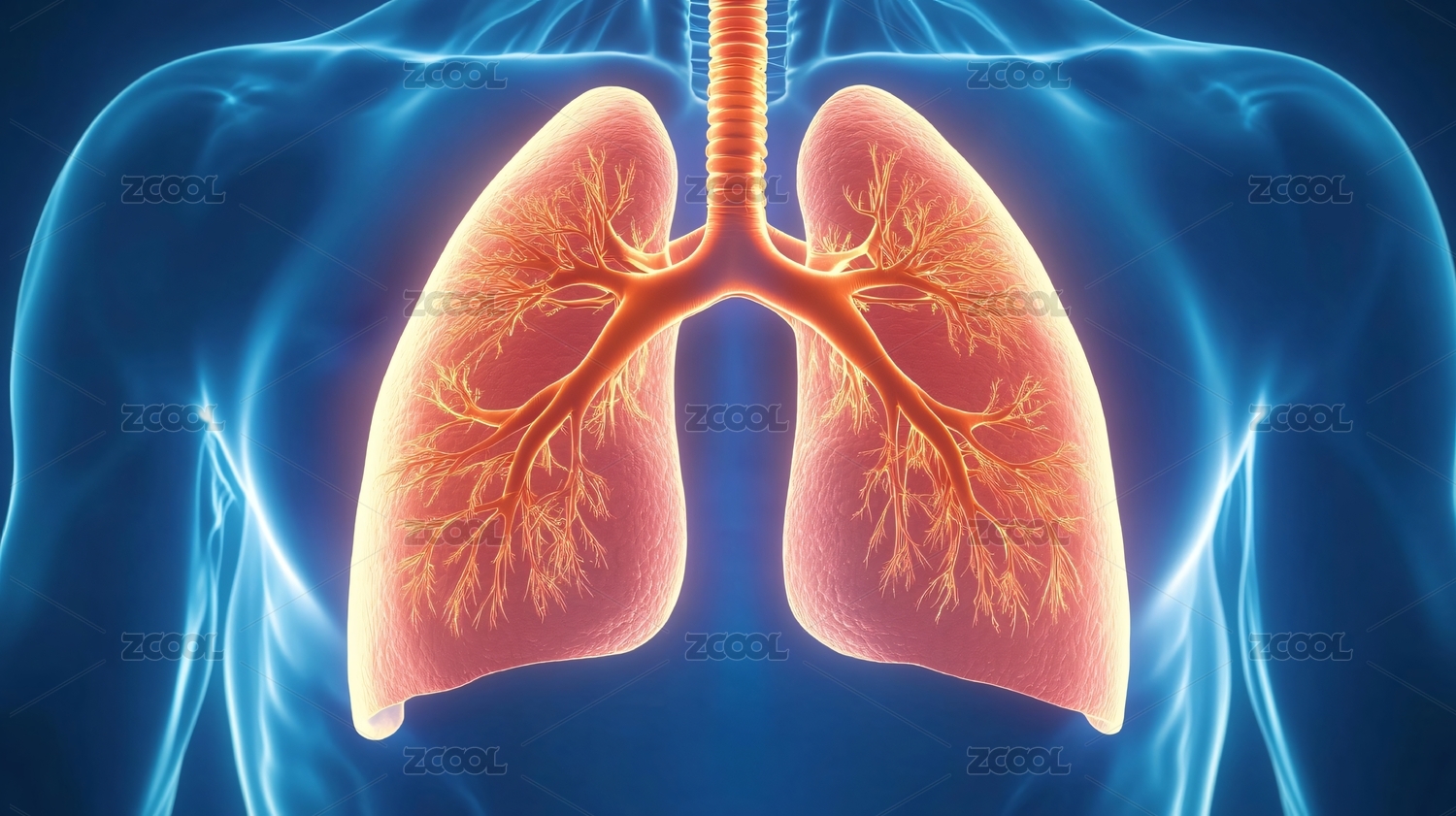 蓝色发光肺部结构图
