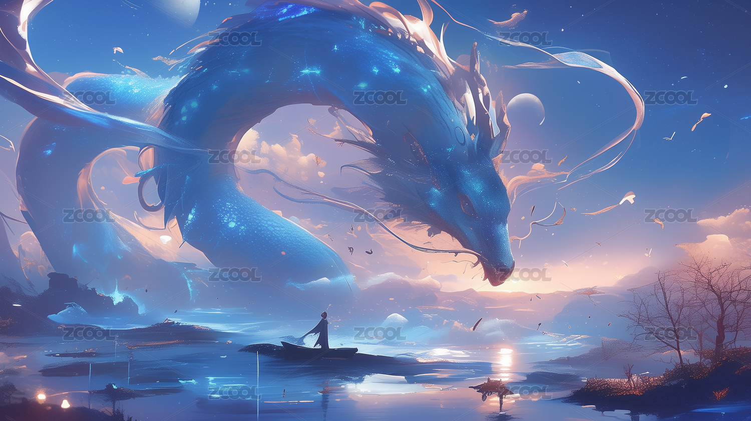 游戏美术资源: 可作为角色扮演游戏(RPG)或冒险游戏的场景背景、加载画面、宣传图,或作为游戏中神兽、守护者的概念设计。