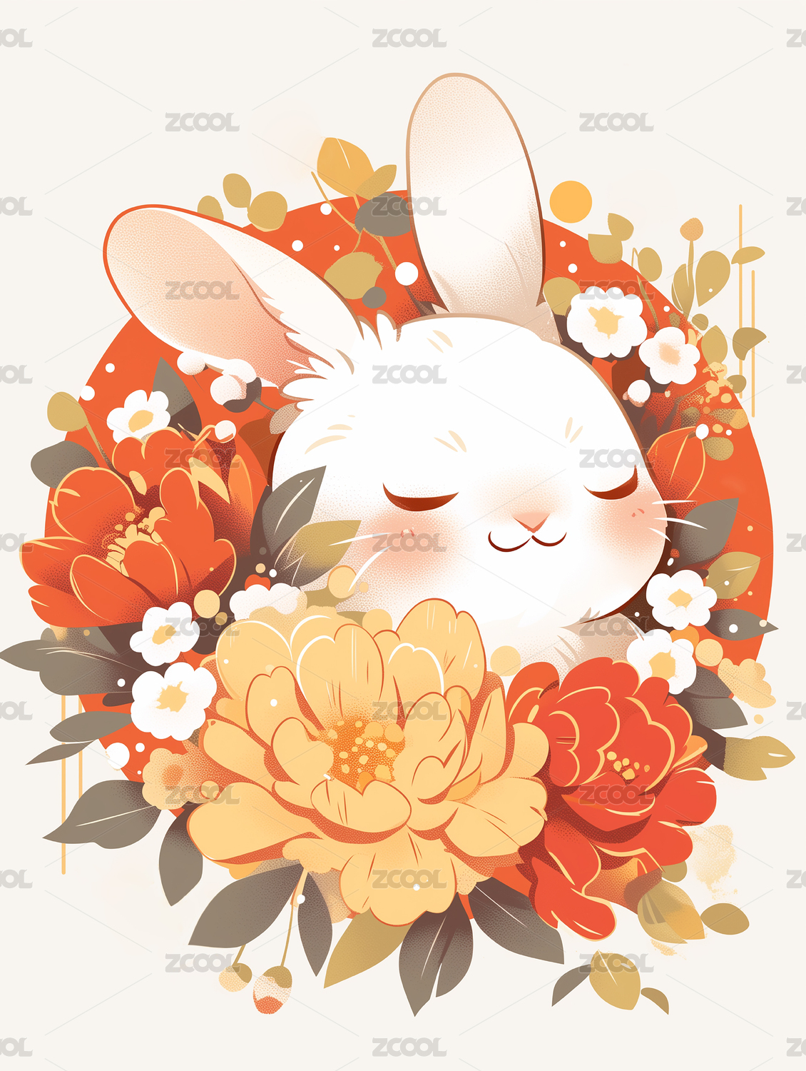 牡丹花小兔