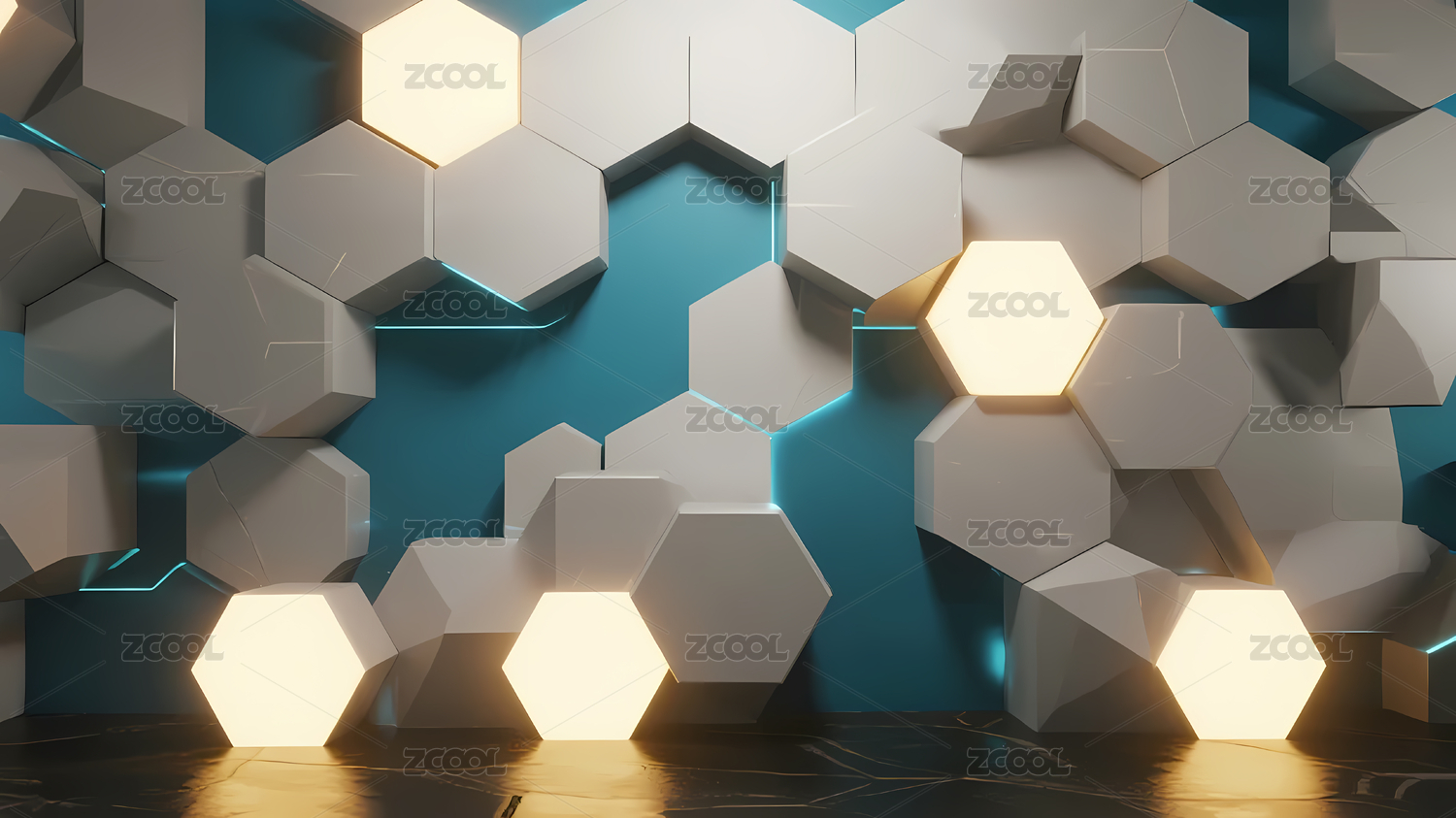 发光六边形3D几何图案设计