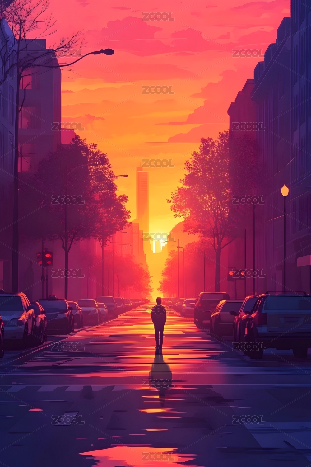 夕阳西下城市街道