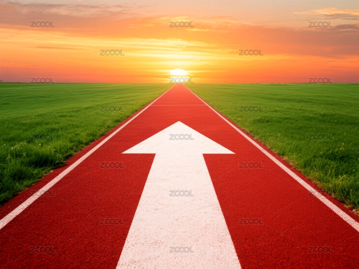 中国青海笔直的无人道路延伸到尽头向上的箭头象征增长的趋势