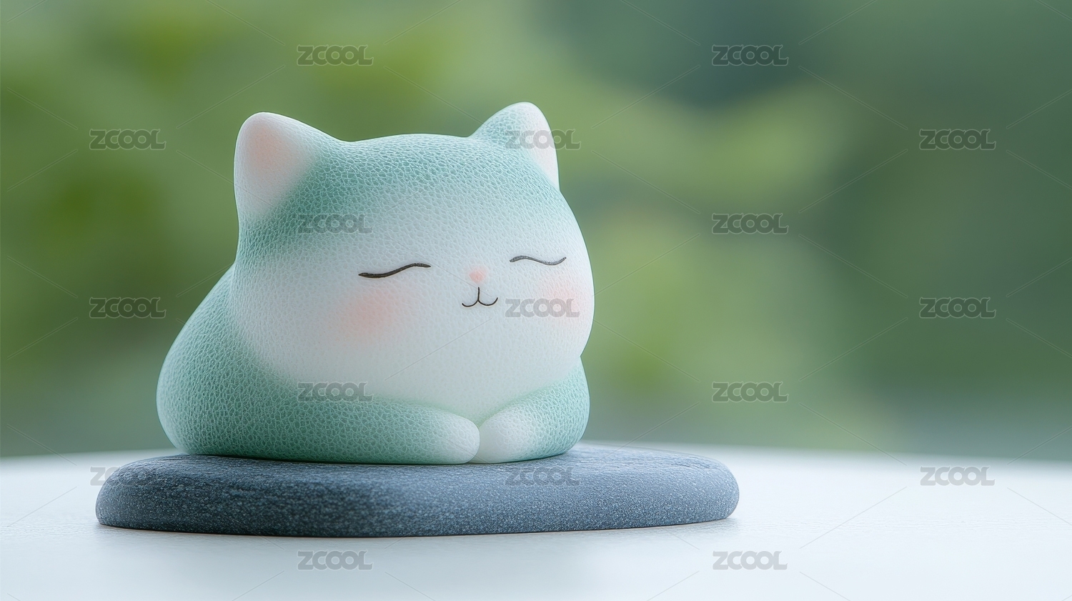 青绿色猫咪摆件