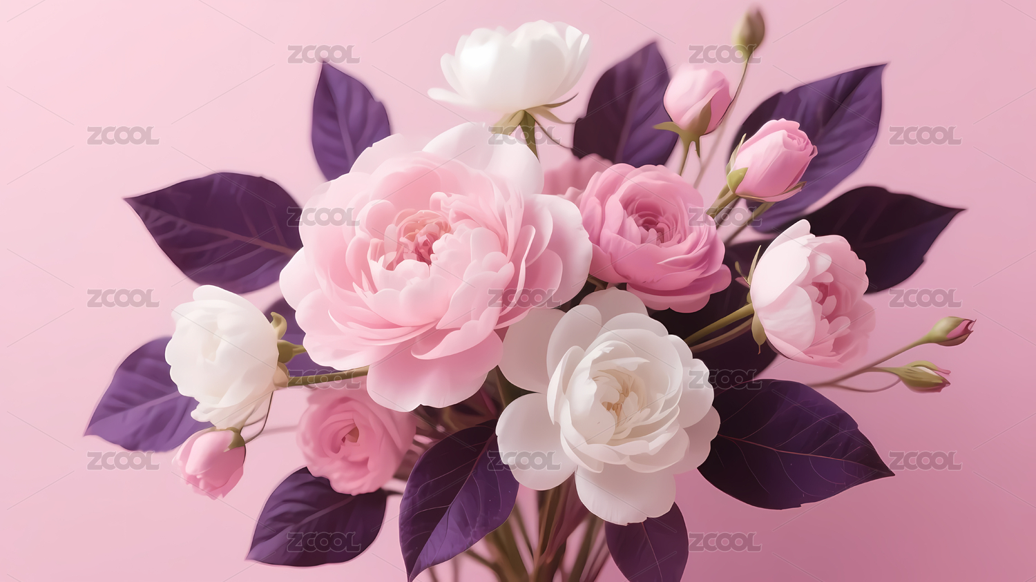 梦幻粉色玫瑰花簇