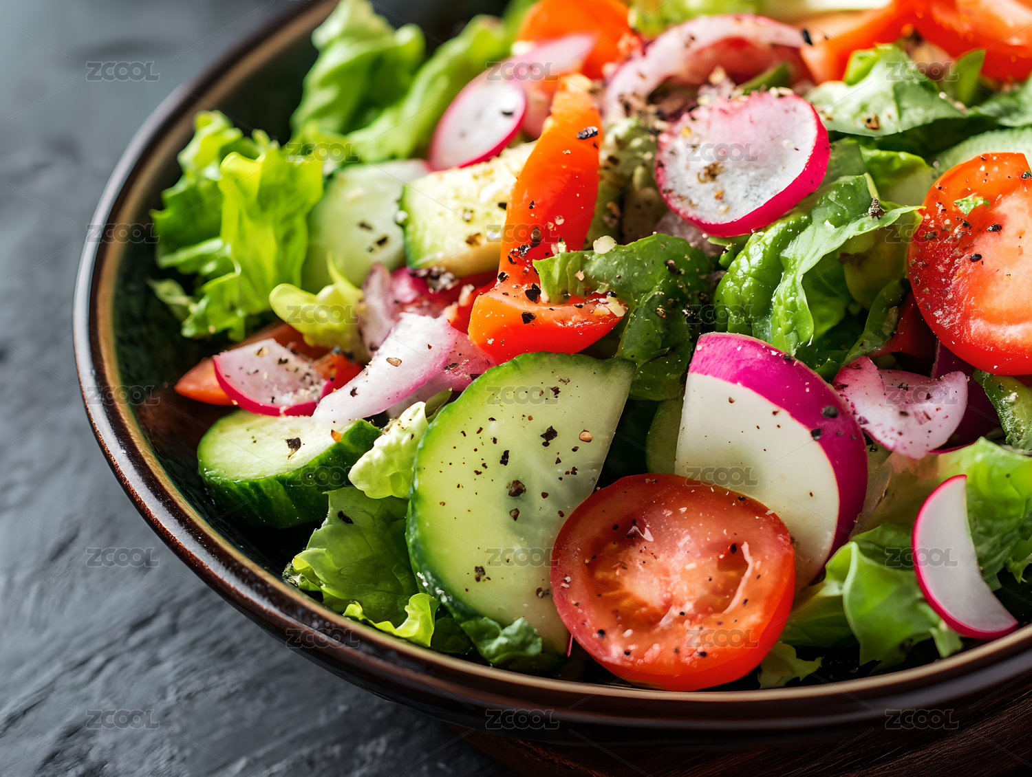 一盘美味健康的蔬菜沙拉放在灰色水泥地上