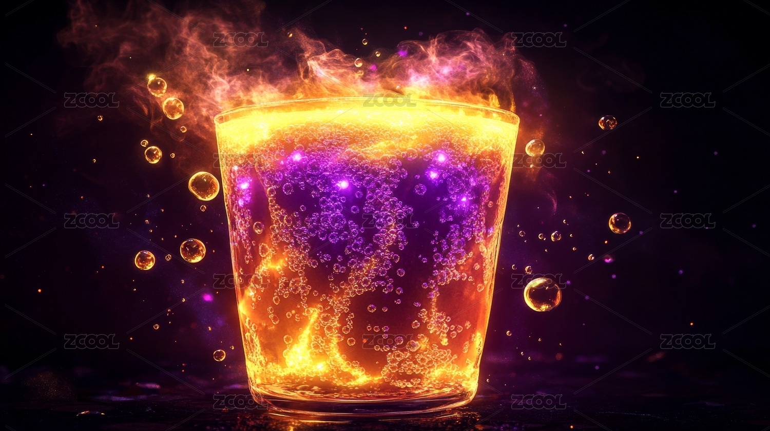 神秘火焰饮品闪耀着紫色光芒