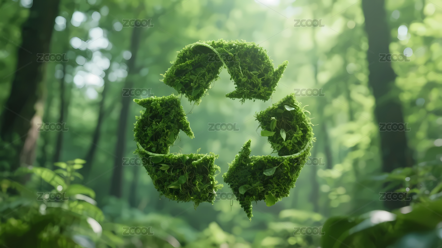绿色植物回收标志与森林