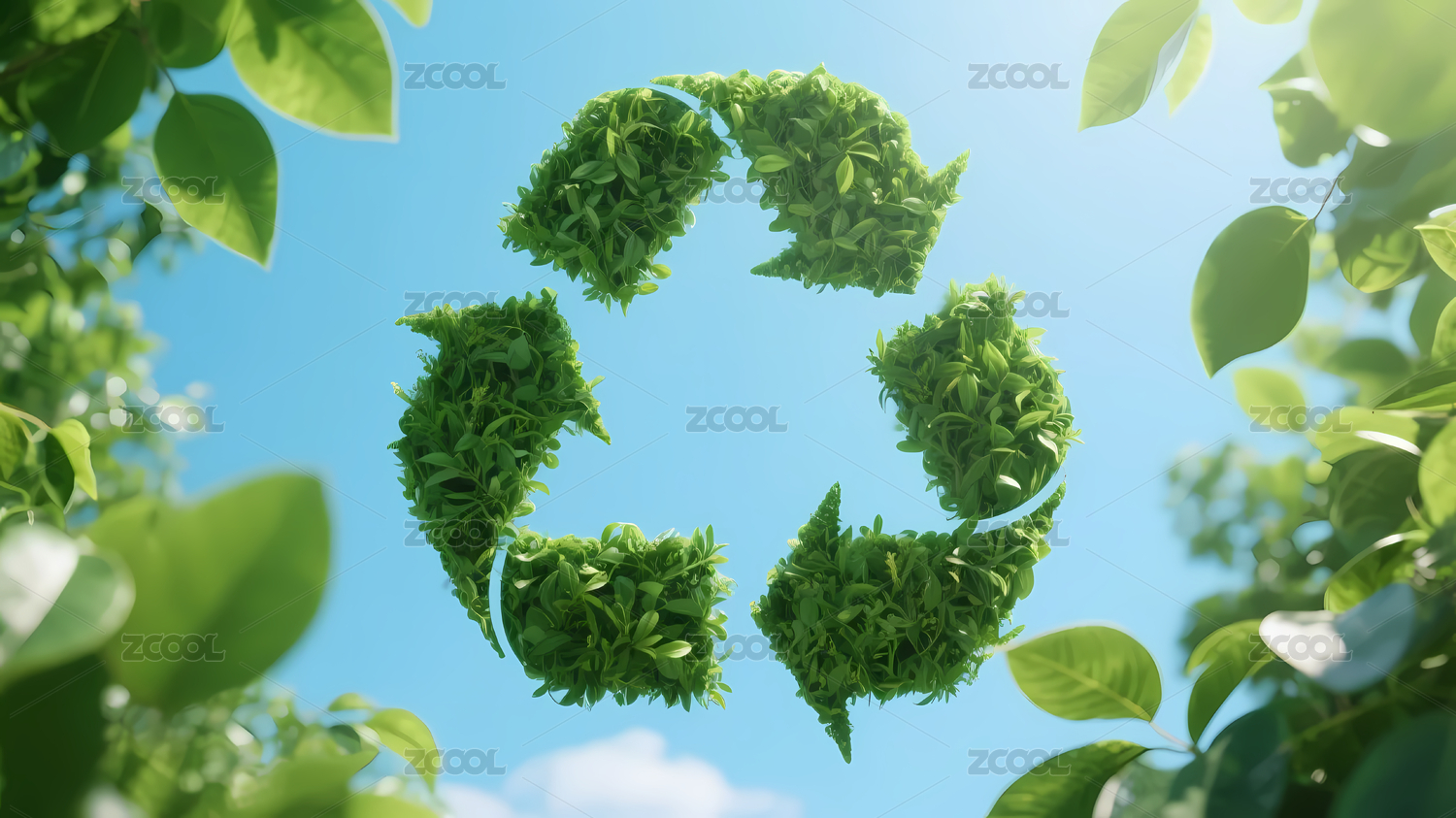 自然,绿色,蓝天,白云,绿叶,环保,标志,回收,植物,清新