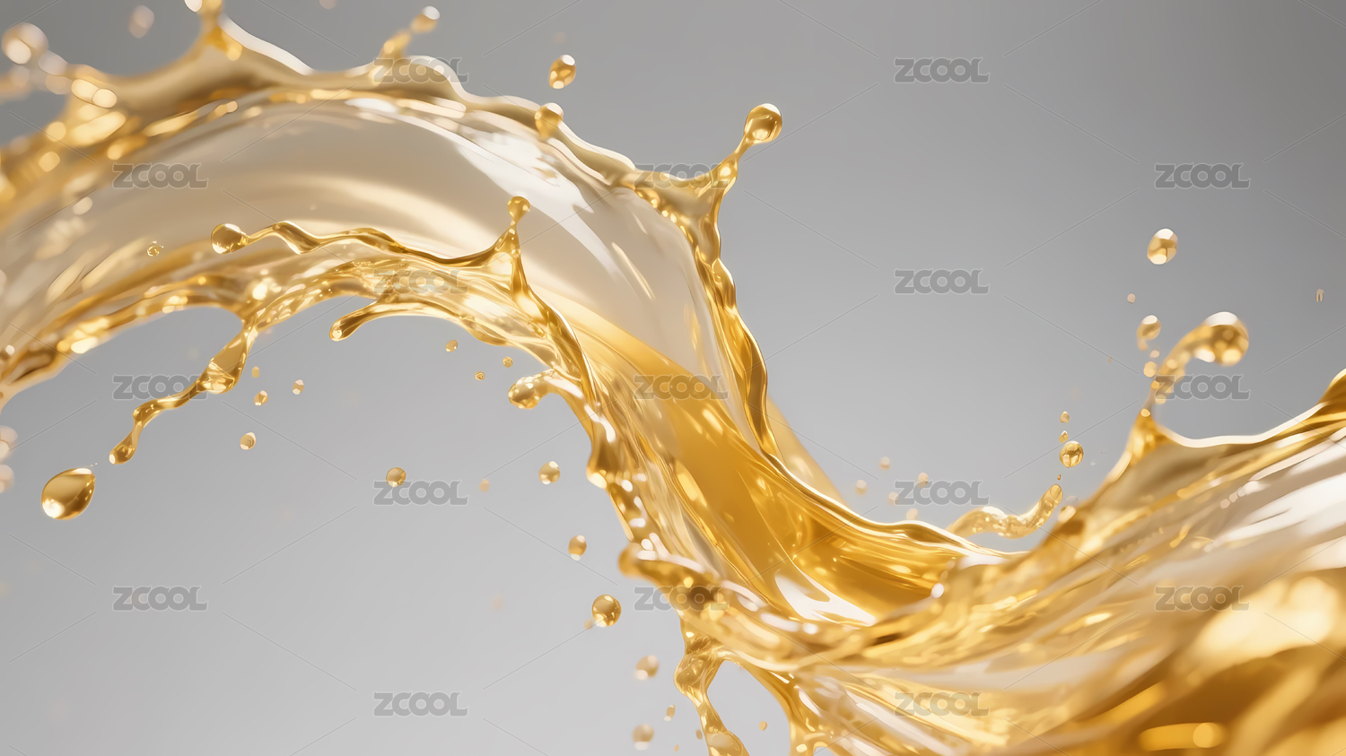 视觉,动态,水花,飞溅,液体,金色,流动,效果,浅灰,活力