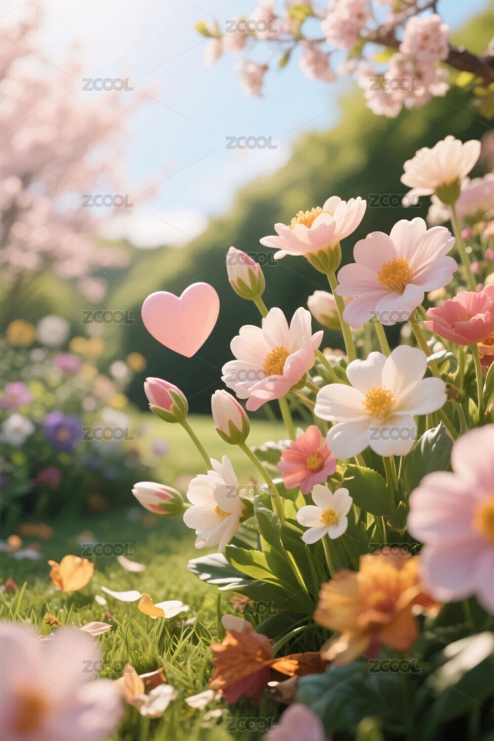 春日鲜花爱心风景图