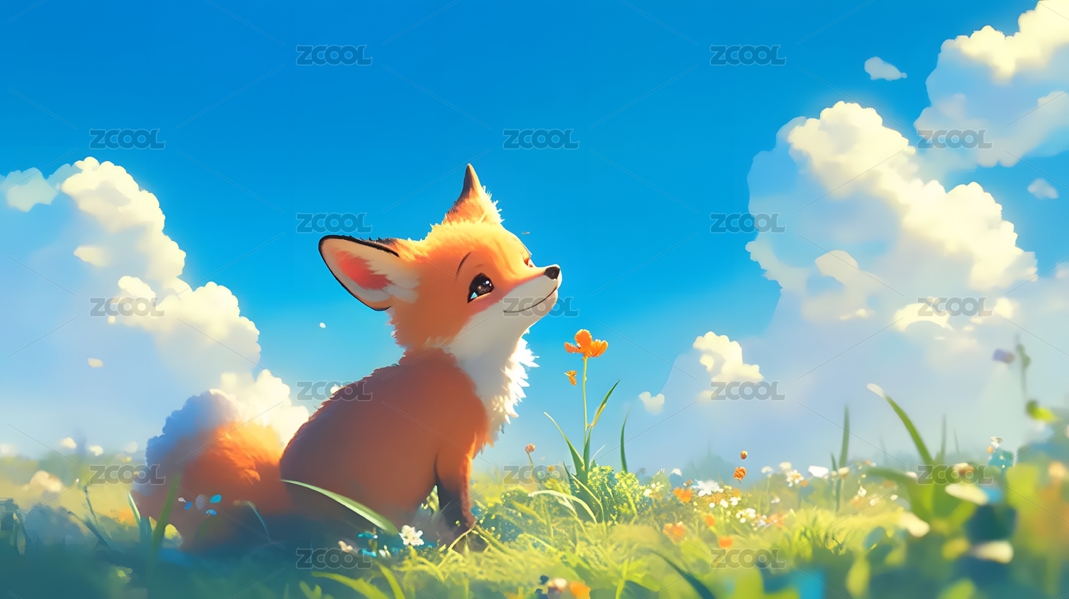 狐狸蓝天草地壁纸