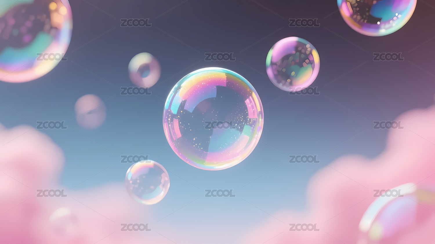 清新,紫色,透明,渐变,粉色,天空,白云,泡泡,漂浮,纯净
