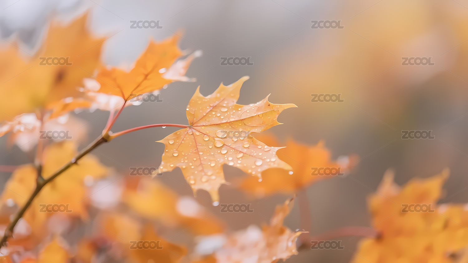 枫叶,水珠,模糊,秋色,棕色,柔和,自然,植物,金黄,黄色