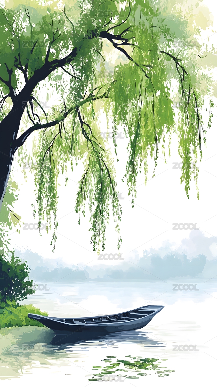 水墨画风小船在水中行