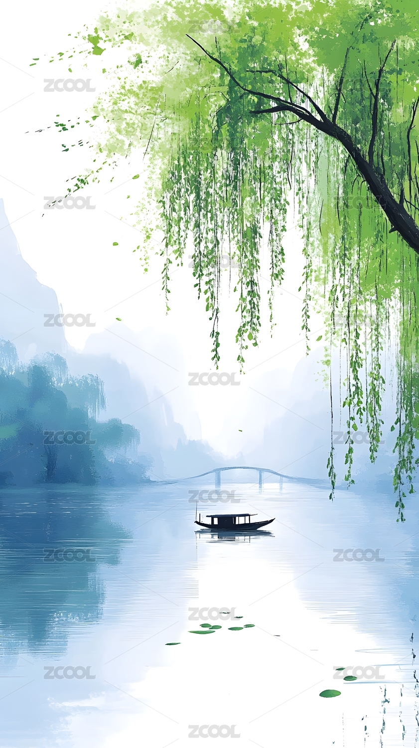 水墨山水风景插画