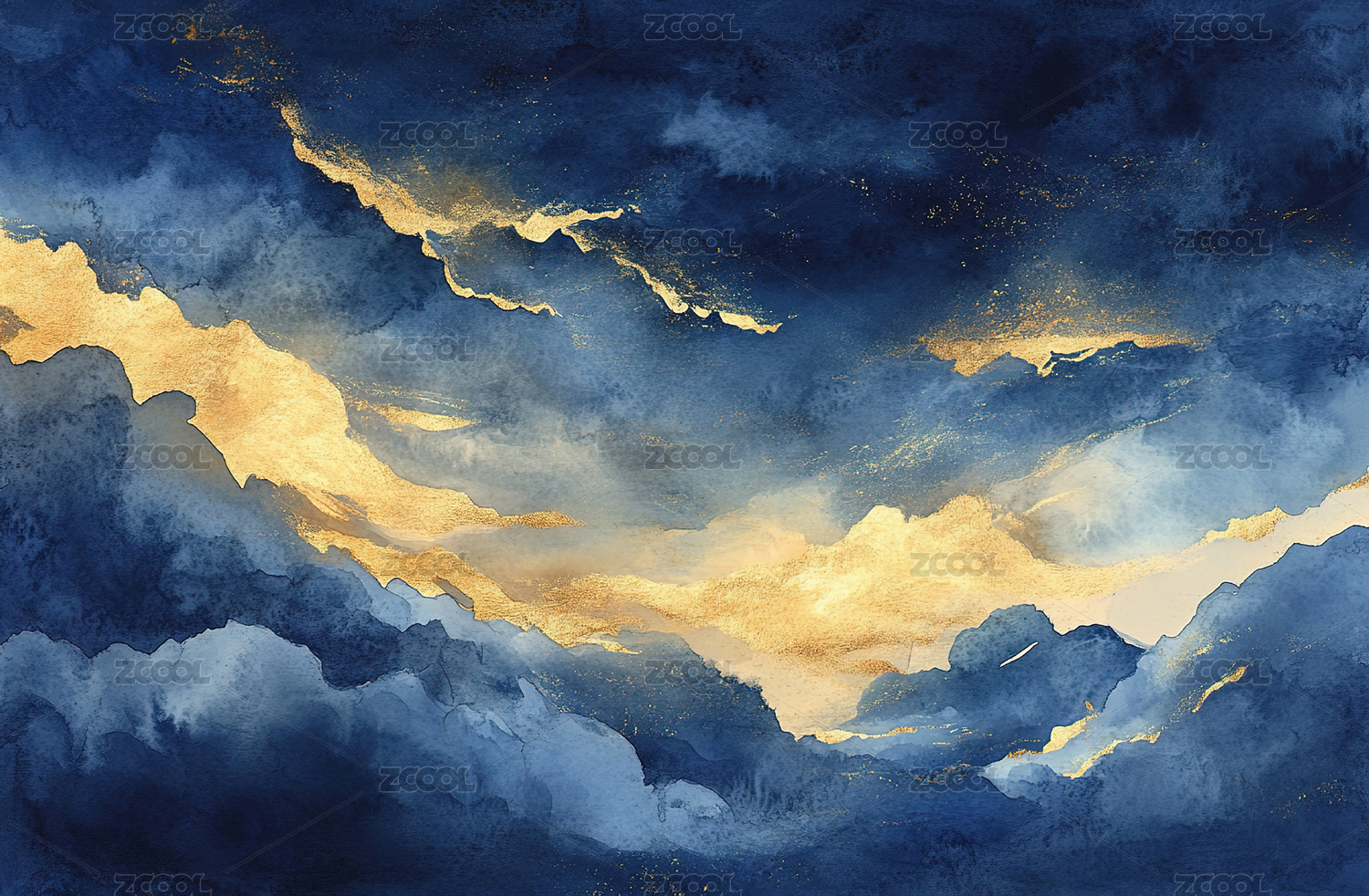 抽象山水画蓝金相间
