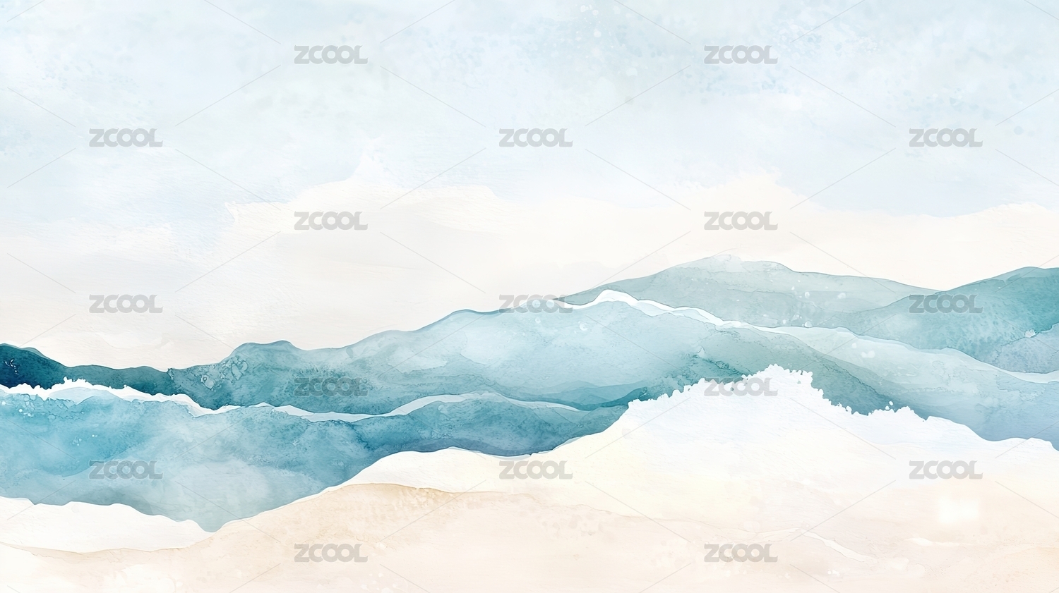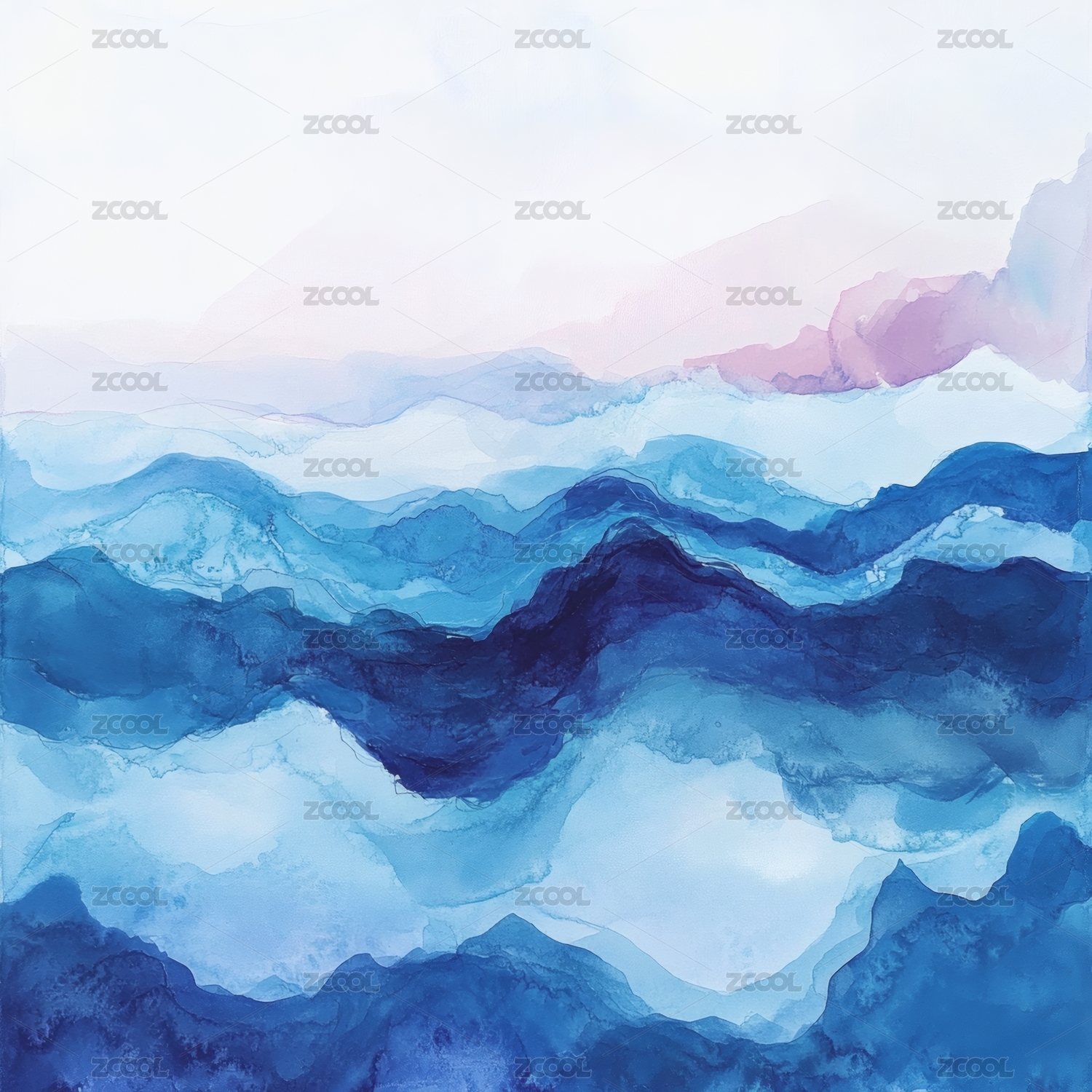 蓝调山峦水彩画卷