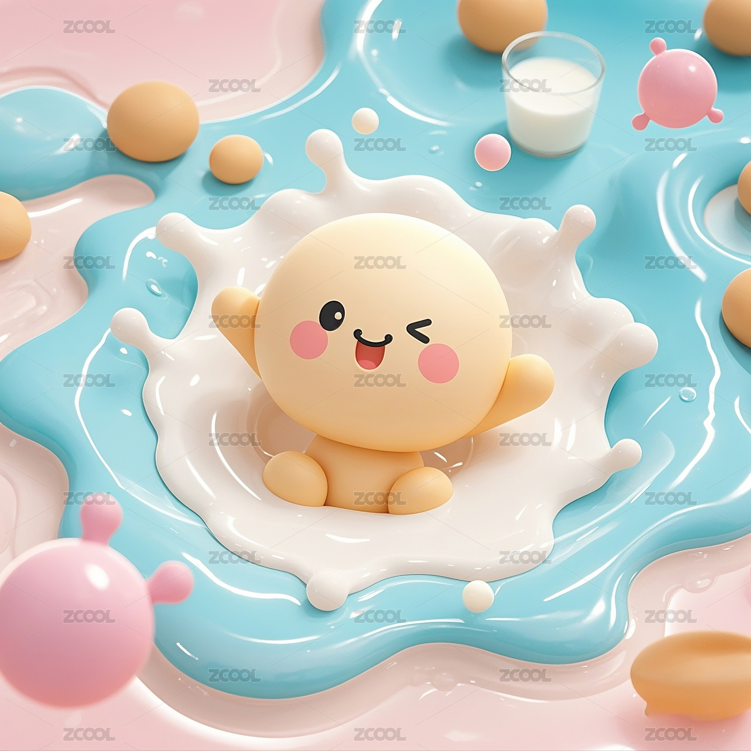 牛奶,乳白色,浪花,水花,小精灵,小怪物,益生菌,可爱,萌萌哒