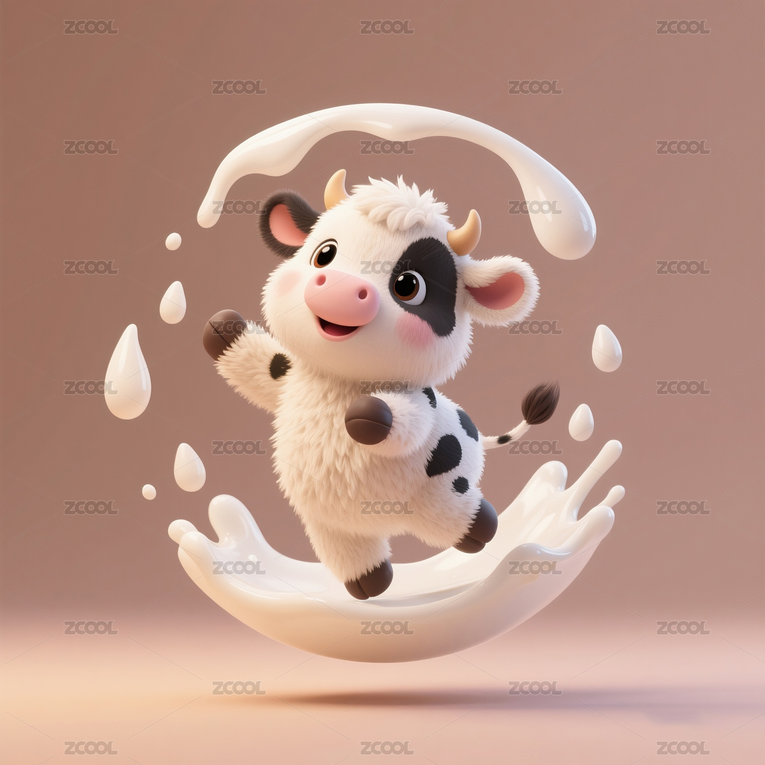 在牛奶里跳舞的奶牛宝宝动漫卡通形象