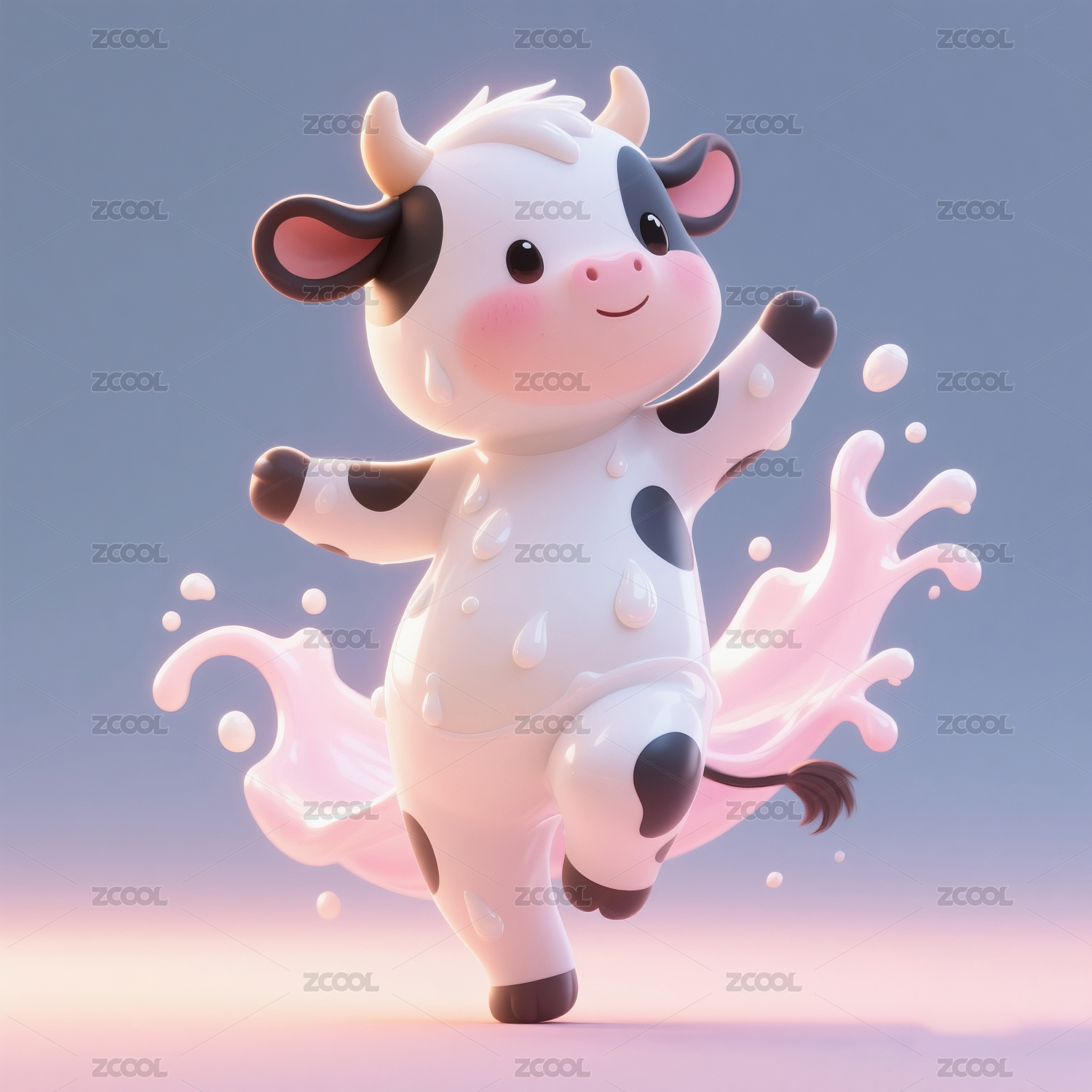 在牛奶里跳舞的奶牛宝宝动漫卡通形象