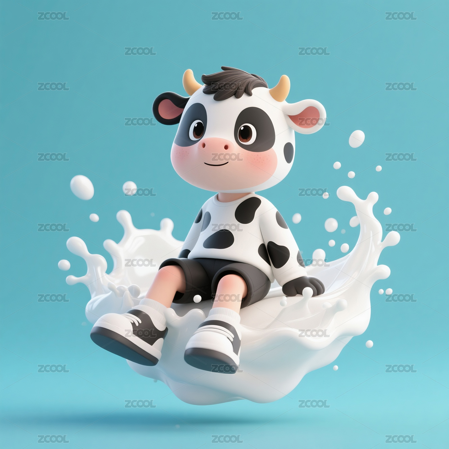 坐在牛奶里穿衣服的奶牛宝宝动漫卡通形象
