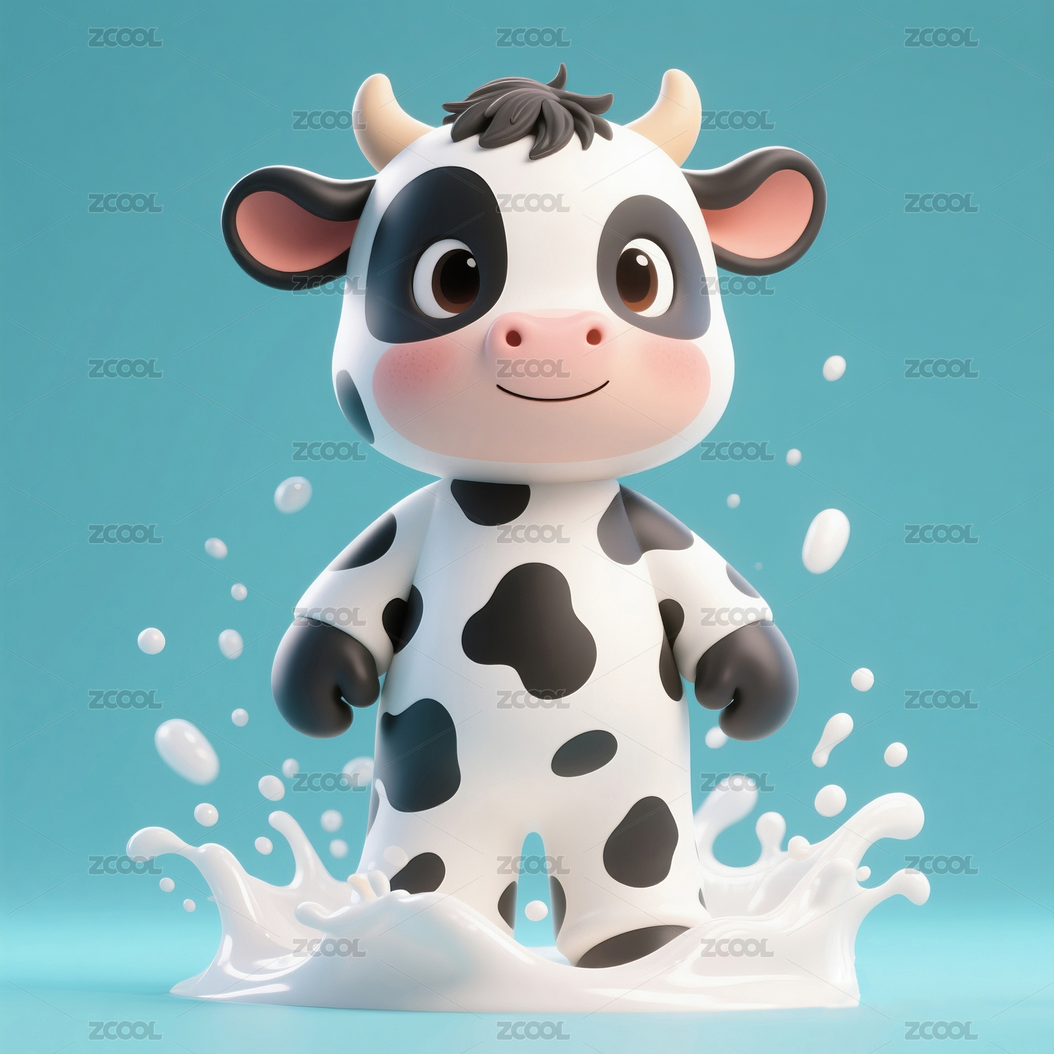 站在牛奶里的奶牛宝宝动漫卡通形象