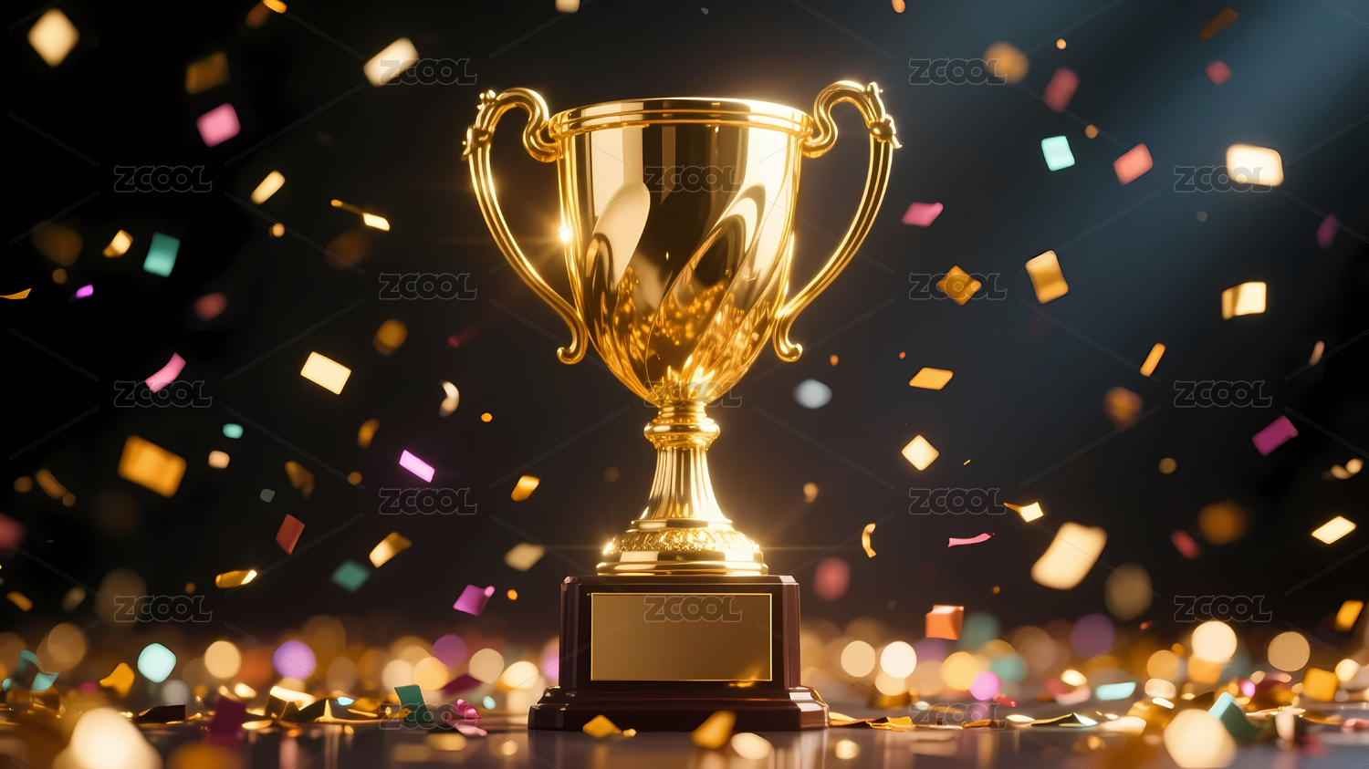 金色,奖杯,黑色,纸屑,庆祝,光斑,胜利,荣耀,装饰,氛围