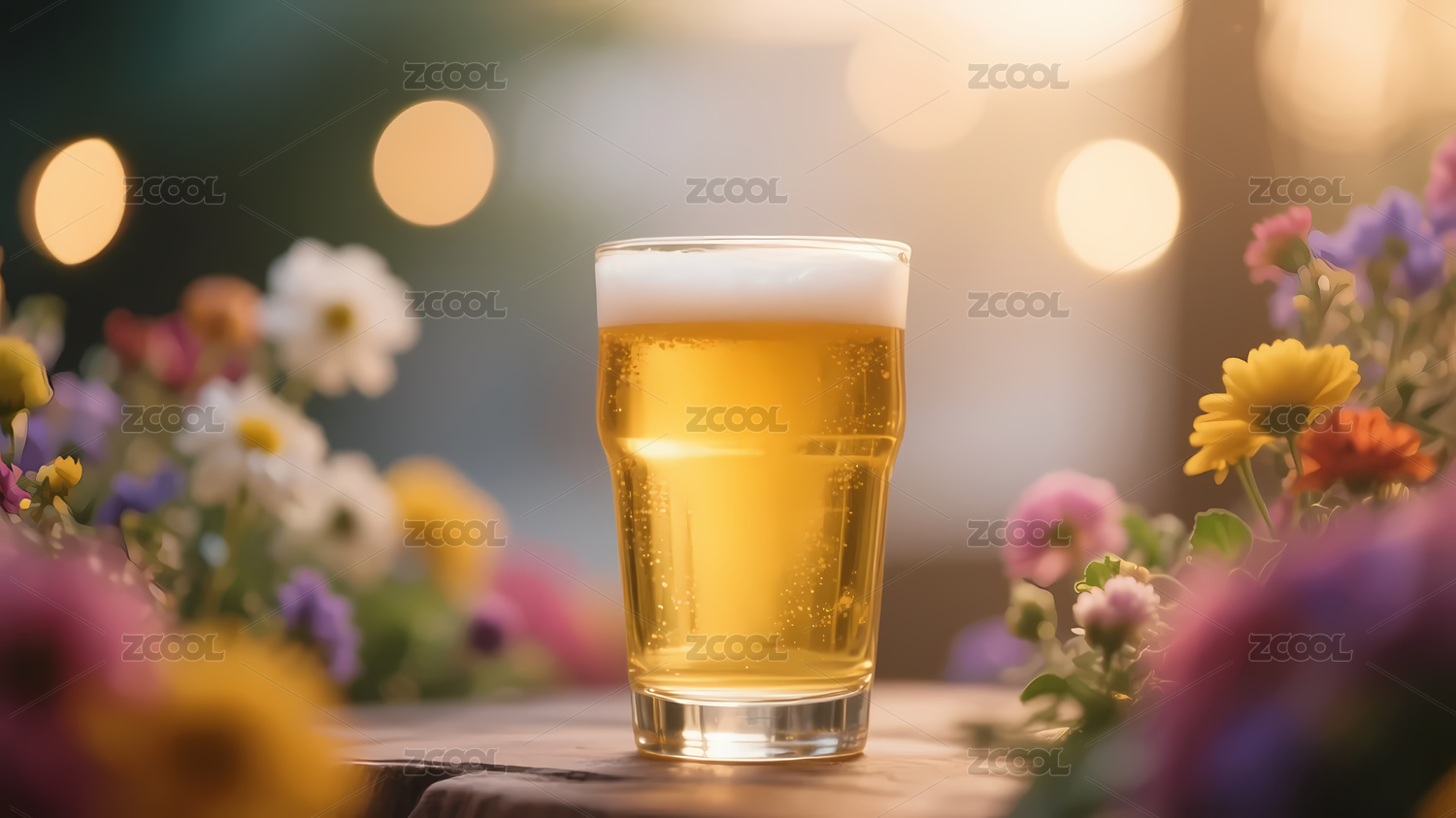 金黄色啤酒灯光花卉