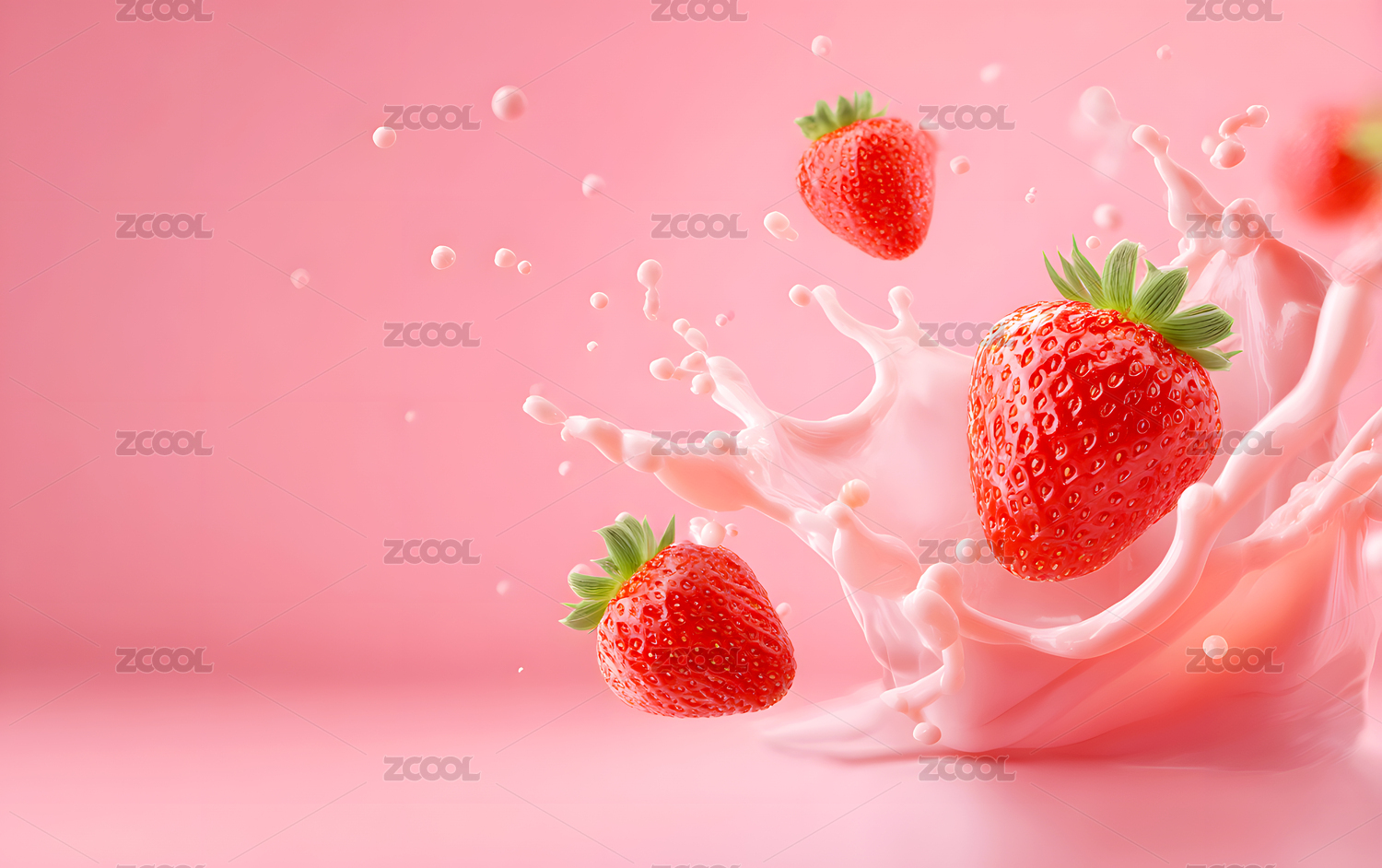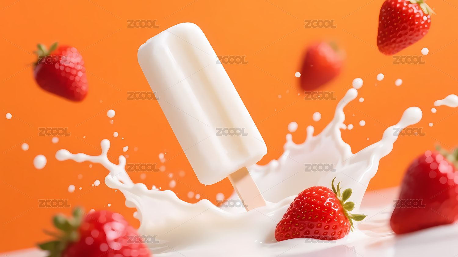 草莓,鲜艳,橙色,冰棒,渐变,水果,飞溅,牛奶,新鲜,活力