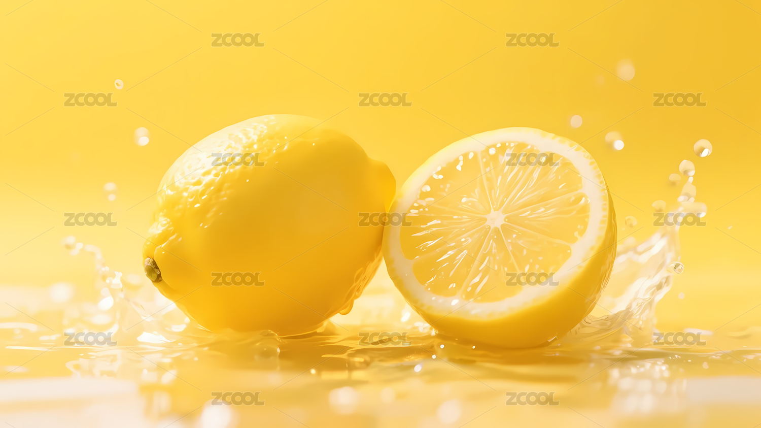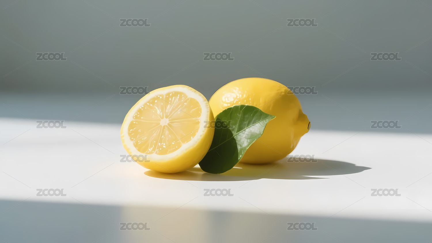 水果,绿色,黄色,柠檬,叶子,清新,自然,切开,果肉,浅黄