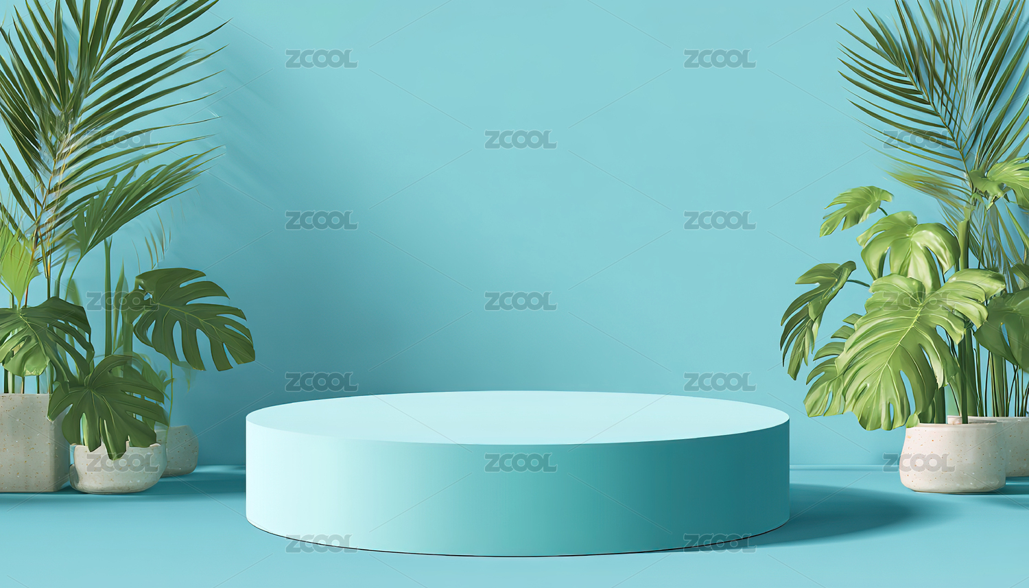 蓝色展台绿植清新场景图