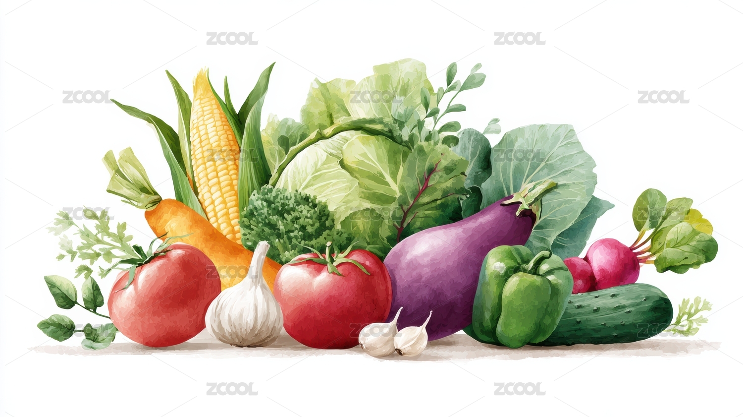 日漫风格 胡萝卜西兰花大蒜番茄辣椒茄子