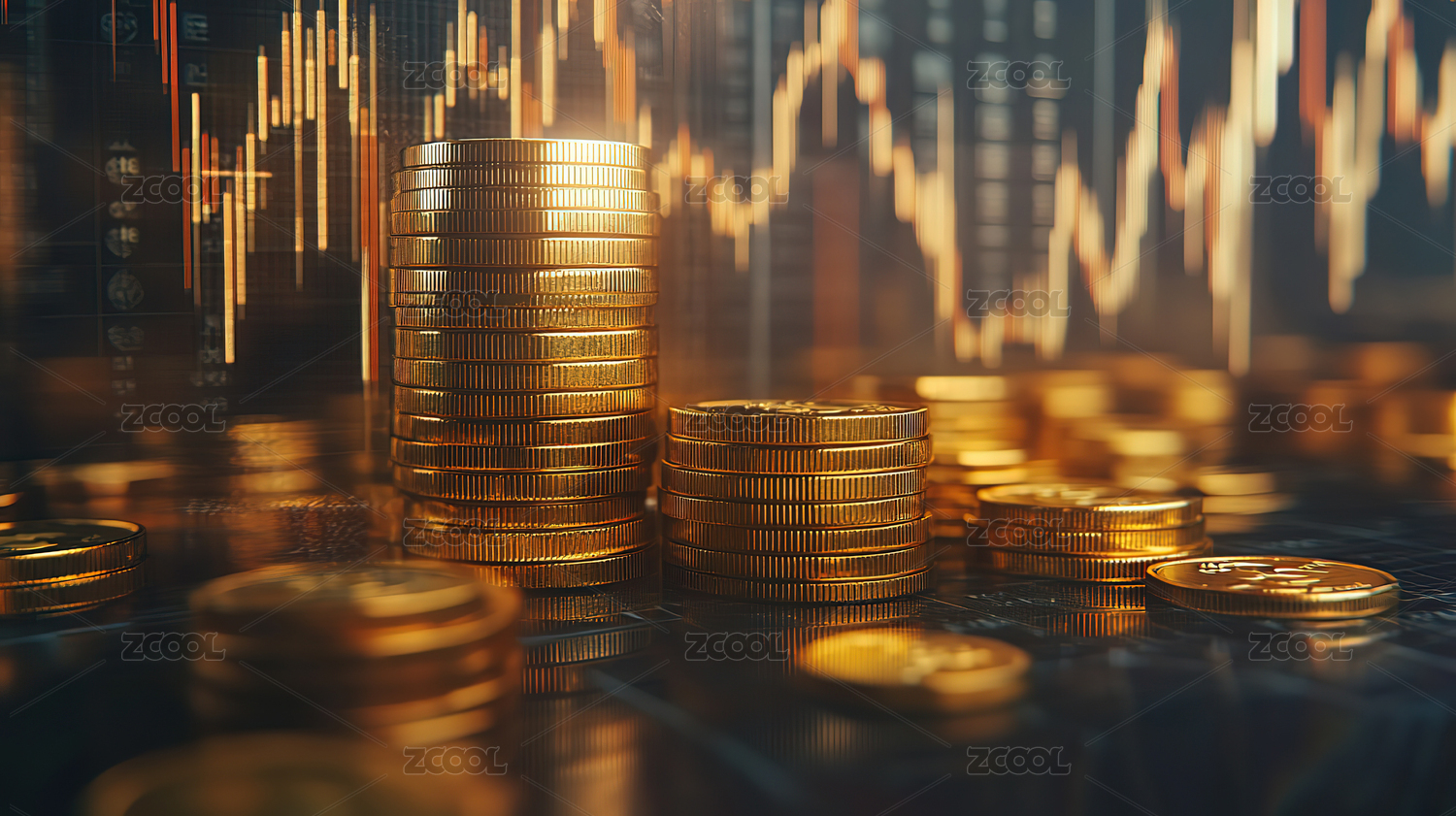 金色硬币叠加展现金融市场