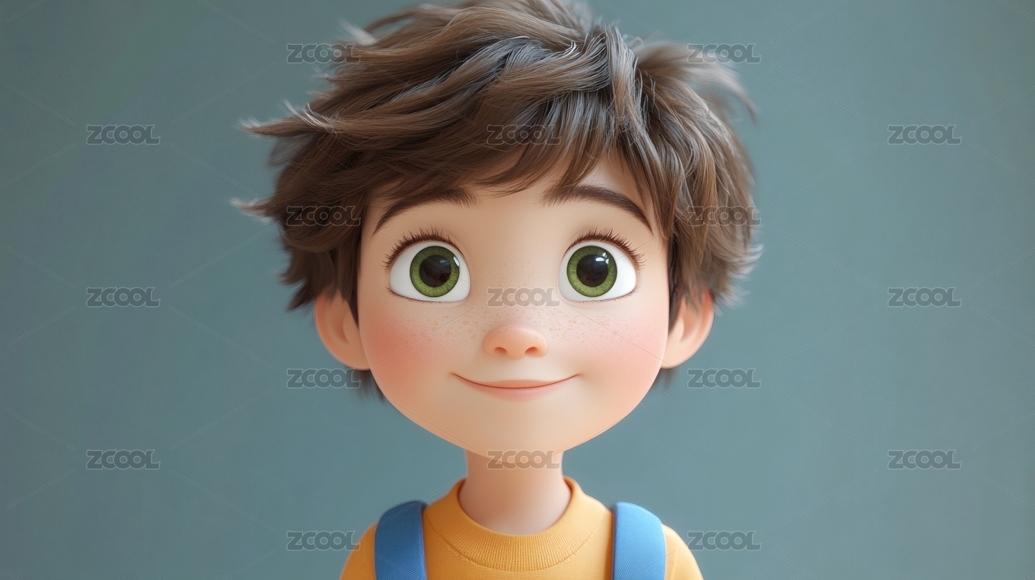 卡通,男孩,红发,卷发,微笑,雀斑,儿童,人物,可爱,阳光