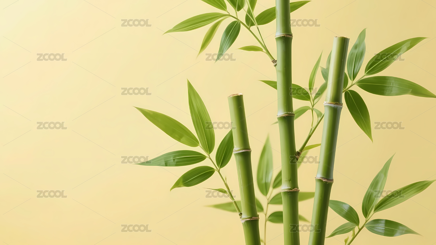 绿色竹叶柔黄背景