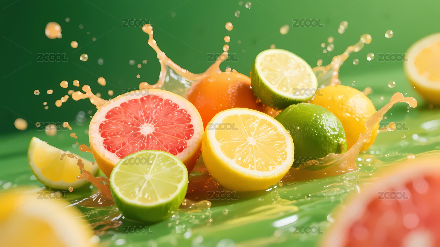 柚子青柠橙子果汁飞溅